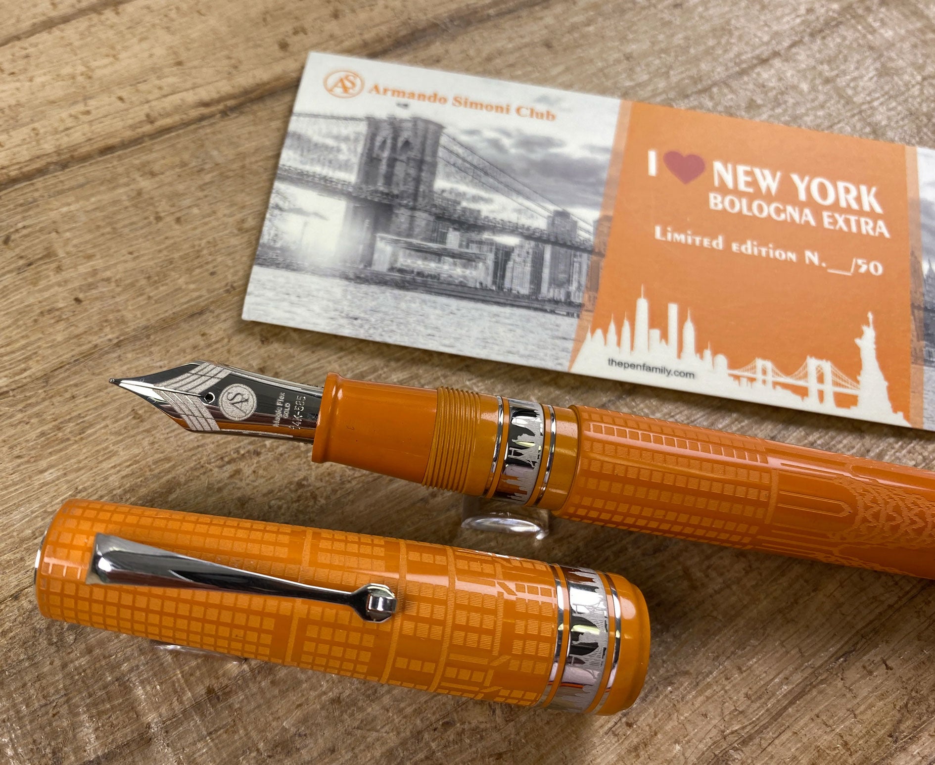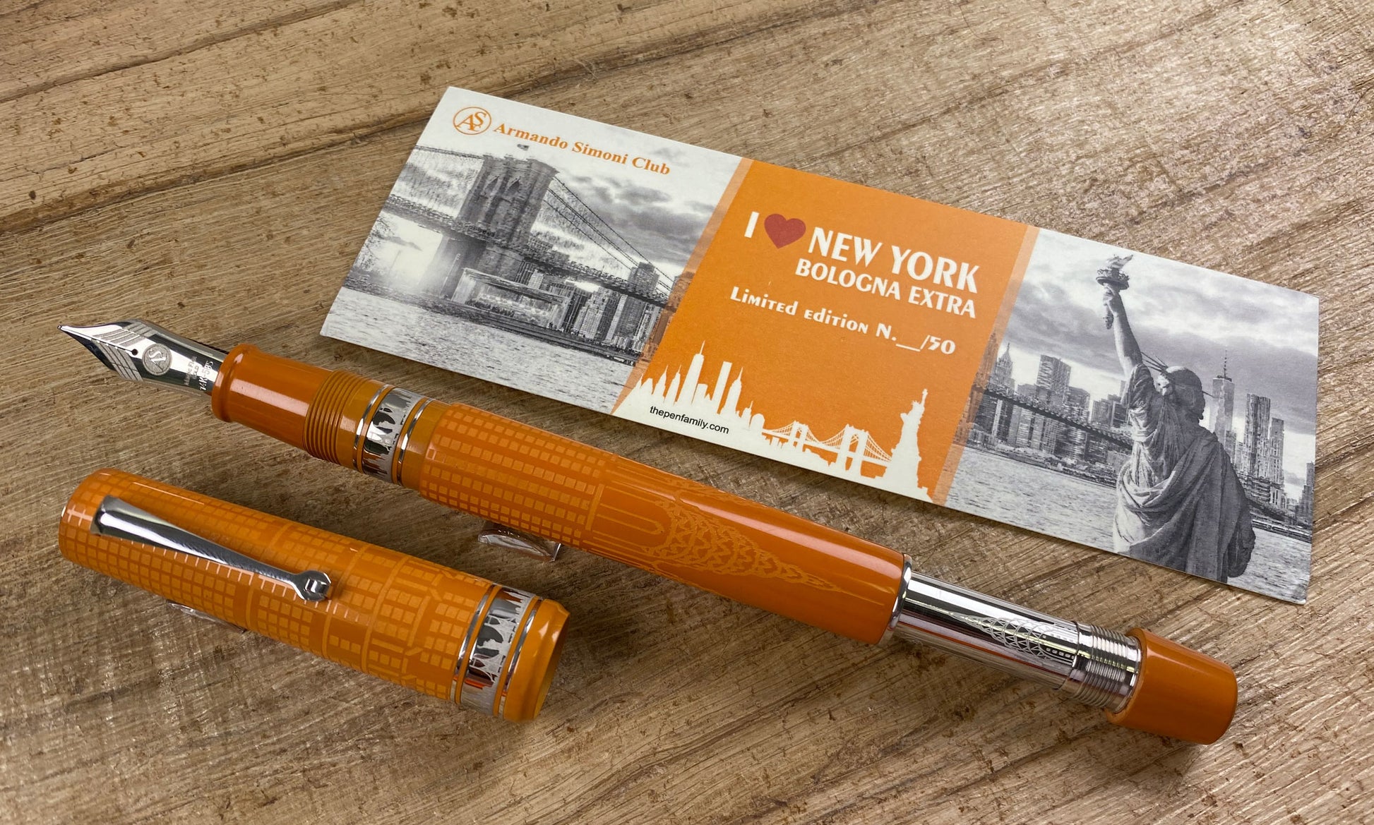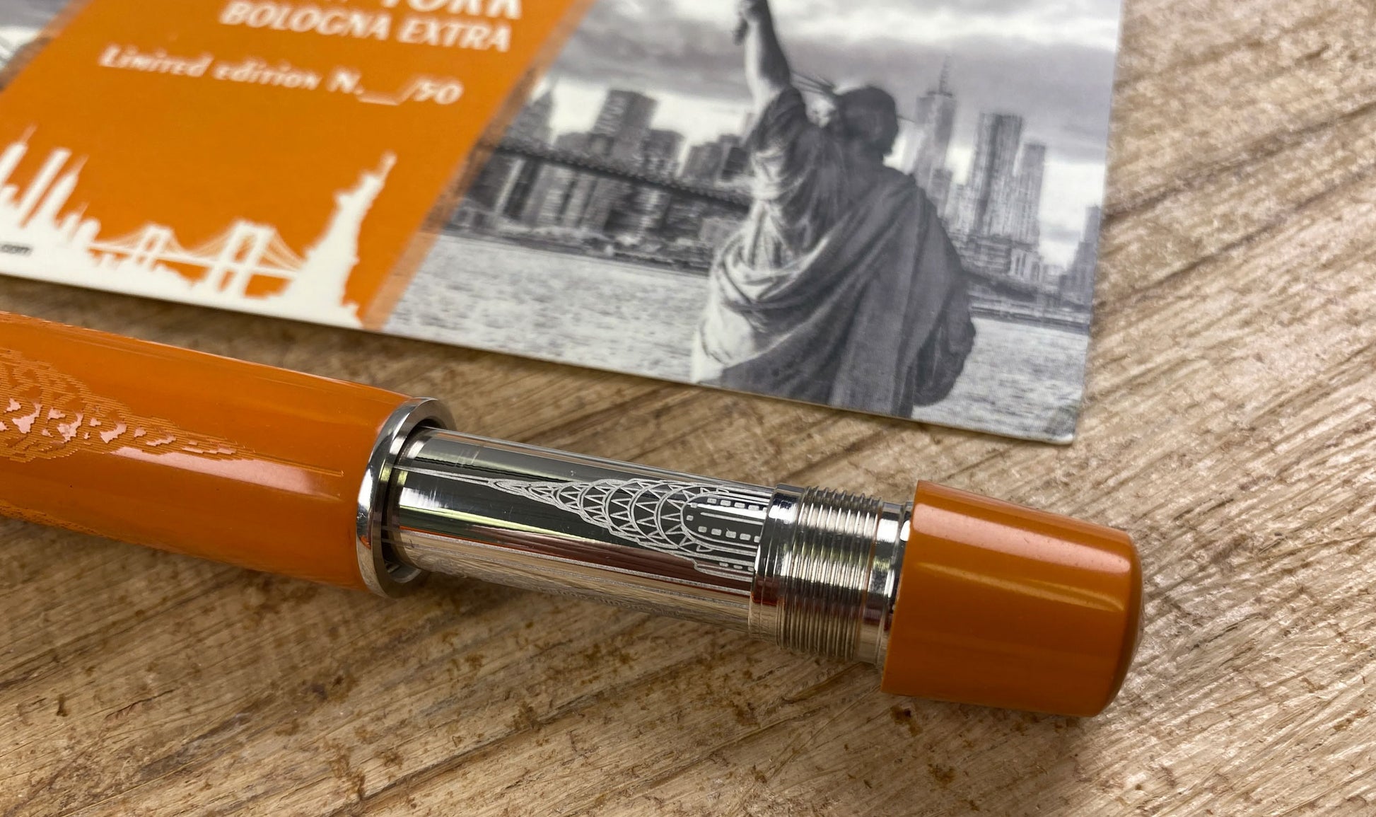 ASC Bologna Extra "I Love New York" Chrysler Building Chased Orange Ebonite Rhodium