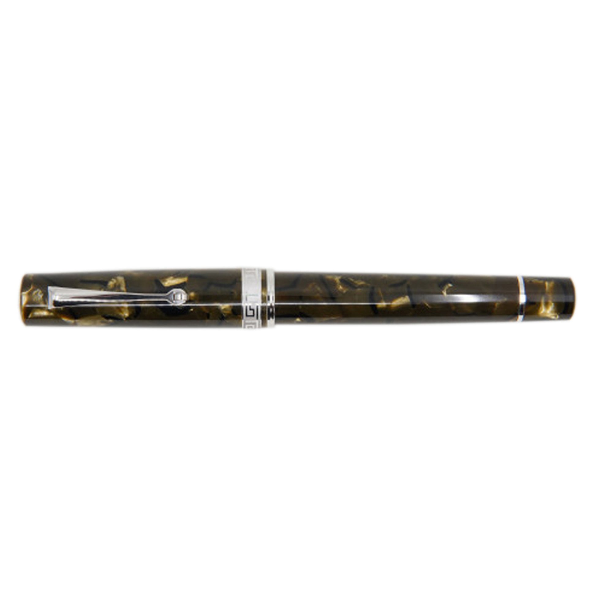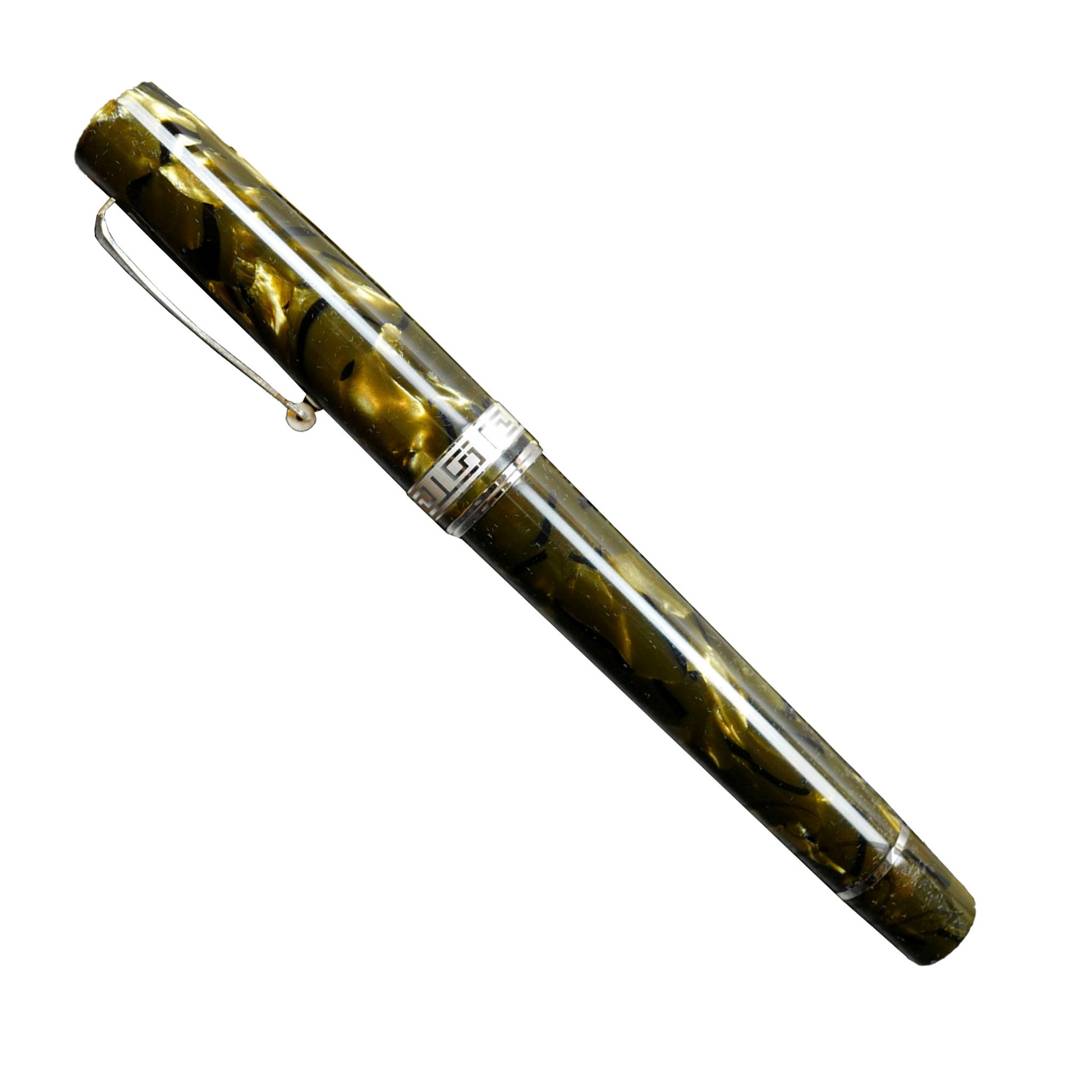 Handcrafted from celluloid originally produced by the now legendary OMAS Pen Company, the ASC Bologna Medio Green Autumn Celluloid Rhodium is being produced in just 30 pieces. Each pen is equipped with your choice of 14k solid gold nib. The specially engraved captured converter filling system allows the use of any bottled fountain pen ink.
