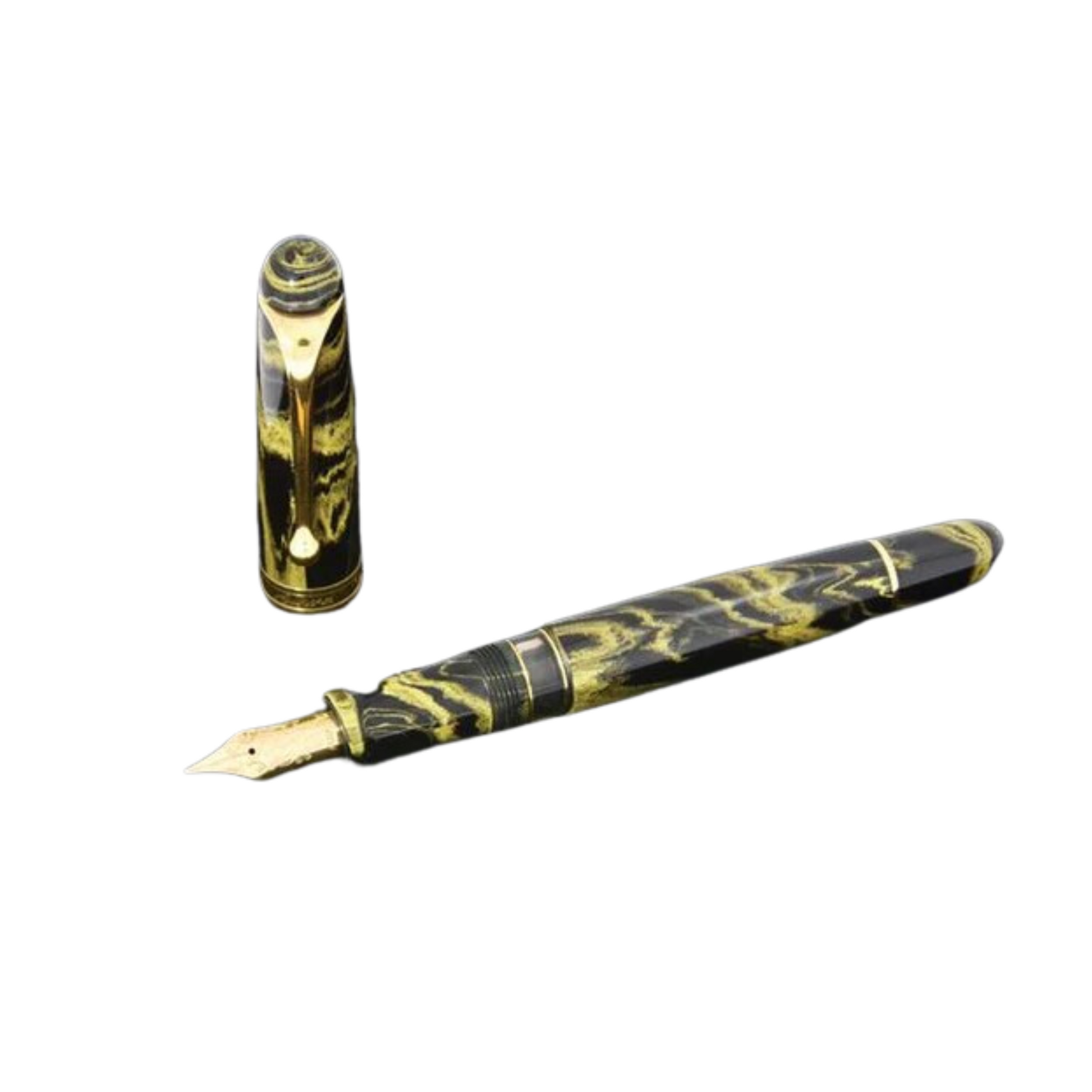 Ebonite is one of the classic materials for high end fountain pens, and the new Aurora 88 Ebonite Limited Edition showcases this material on a classic Aurora model. The mottled blacks and yellows of this pen give it a memorably elegant appearance.