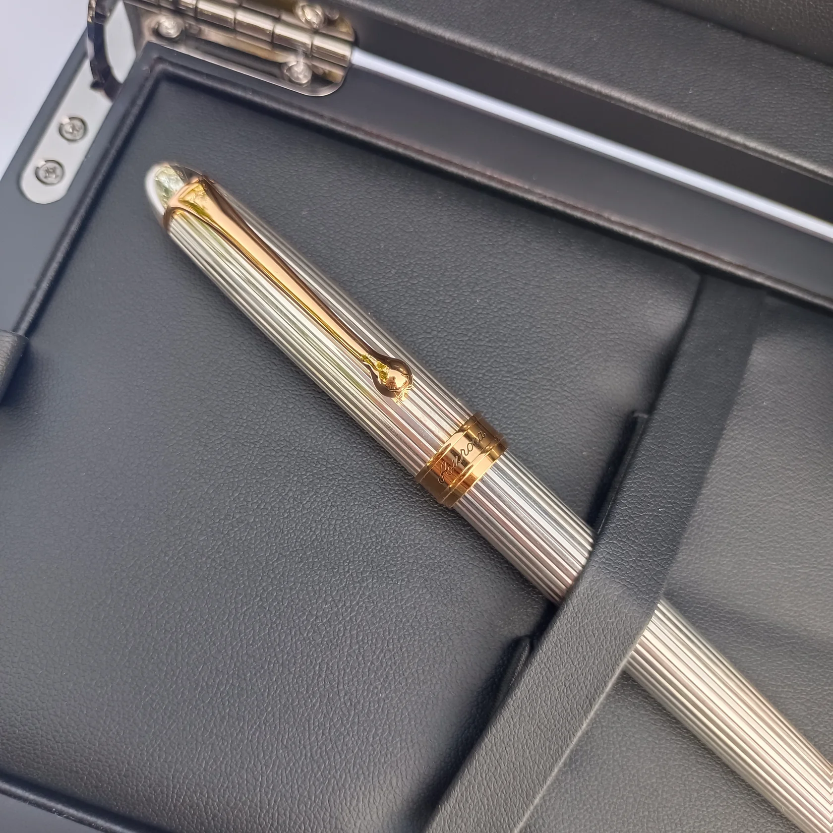 The Aurora 88 Solid Sterling Silver fountain pen is handcrafted at the Aurora workshop in Turin from 925 sterling silver. Each pen is provided with your choice of 14k solid gold nib unit, also manufactured specially by Aurora for their own writing instruments.