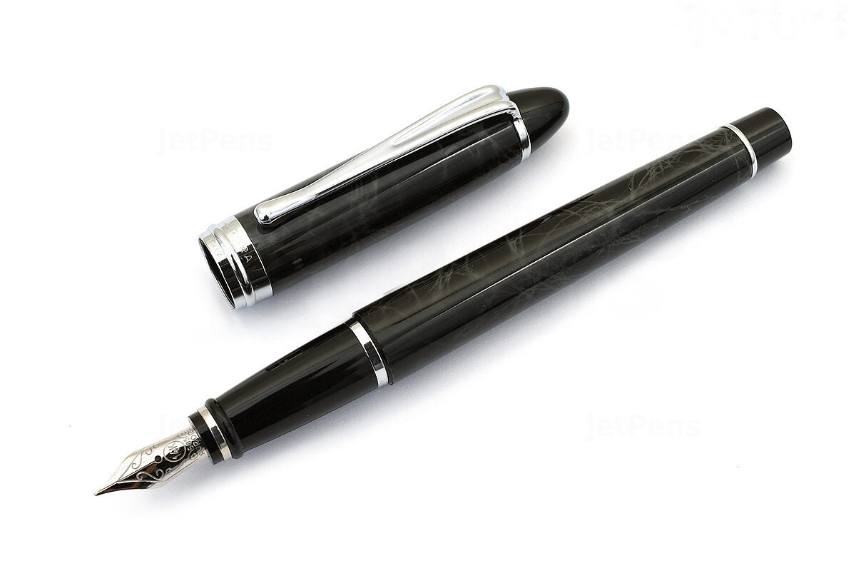 The Aurora Ipsilon De Luxe in Grey Lacquer offers a modern, contemporary finish. With an affordable price and rich grey marbling, this is an excellent introduction to the Aurora line. It has just enough detail to differentiate it from a traditional black pen, while still maintaining its classic style.