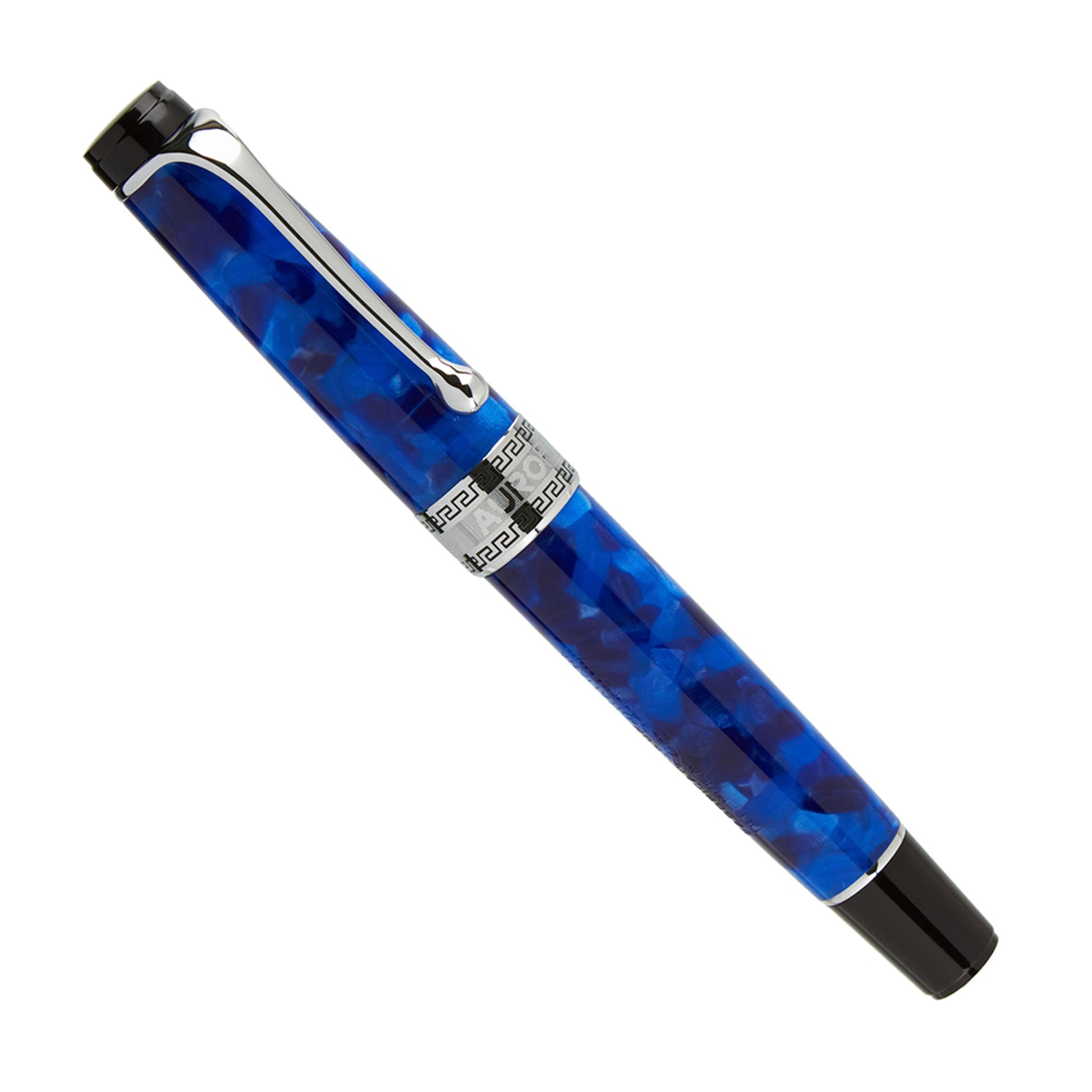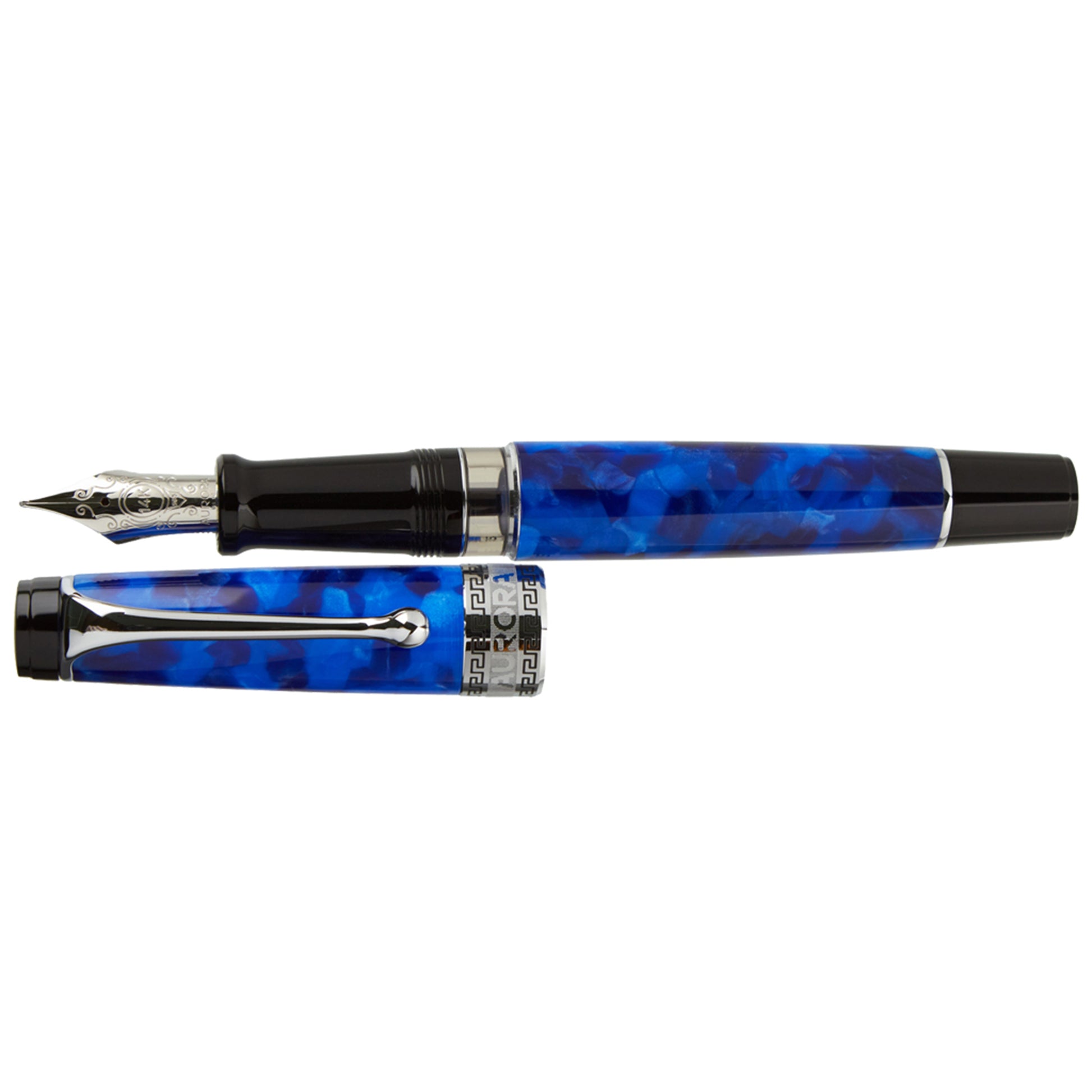 Chrome trim highlights the rich blues of the Aurora Optima Auroloide Blue Chrome. The marbling is unique to each pen produced - no two are exactly alike.