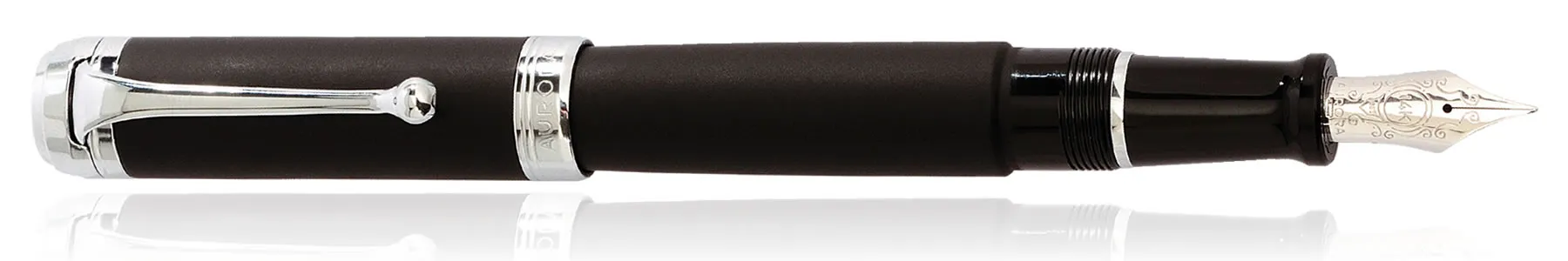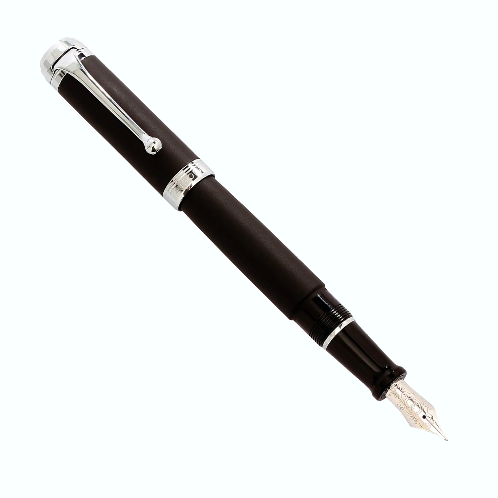 The Aurora Talentum Finesse Black Rubber with chrome trim fountain pen features a rubber surface over high quality resin. Small in size but highly versatile, this is an excellent pen for on-the-go use.
