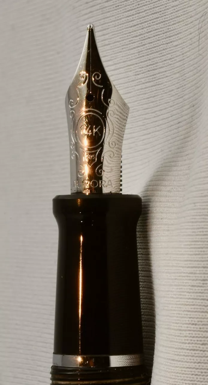 Available with your choice of Small 14k White Gold nib unit. Aurora 14k nibs are well-suited to customizations including Stub, Cursive Italic, or Left Oblique, as well as the modification for added flex.