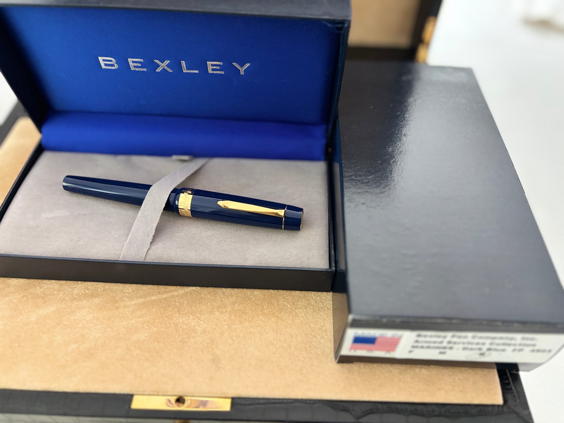 We recently acquired a remarkable collection of 400 Bexley fountain pens crafted between 1993 and 2013, all in pristine, unused condition. Each pen comes complete with its original box and paperwork. Made in Columbus, Ohio, these pens showcase classic American craftsmanship at its finest. Don’t miss your chance to own a beautiful part of Bexley’s legacy—converter included.