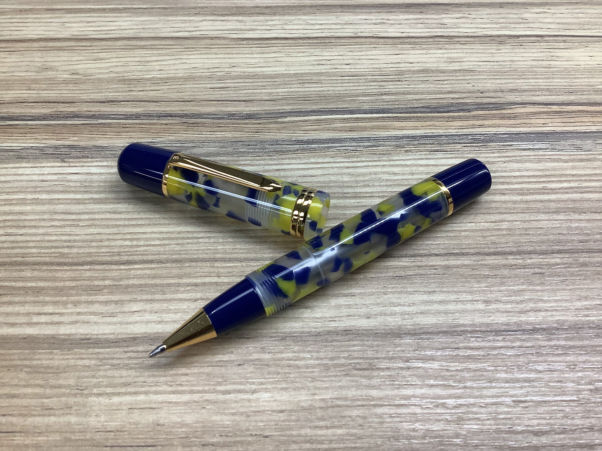 This Bexley Blue and Yellow Marble rollerball features a vibrant marbled resin with dynamic color contrast. Its smooth rollerball mechanism provides effortless writing while maintaining the same craftsmanship found in Bexley’s fountain pens. A bold and expressive piece that stands out in any collection.
