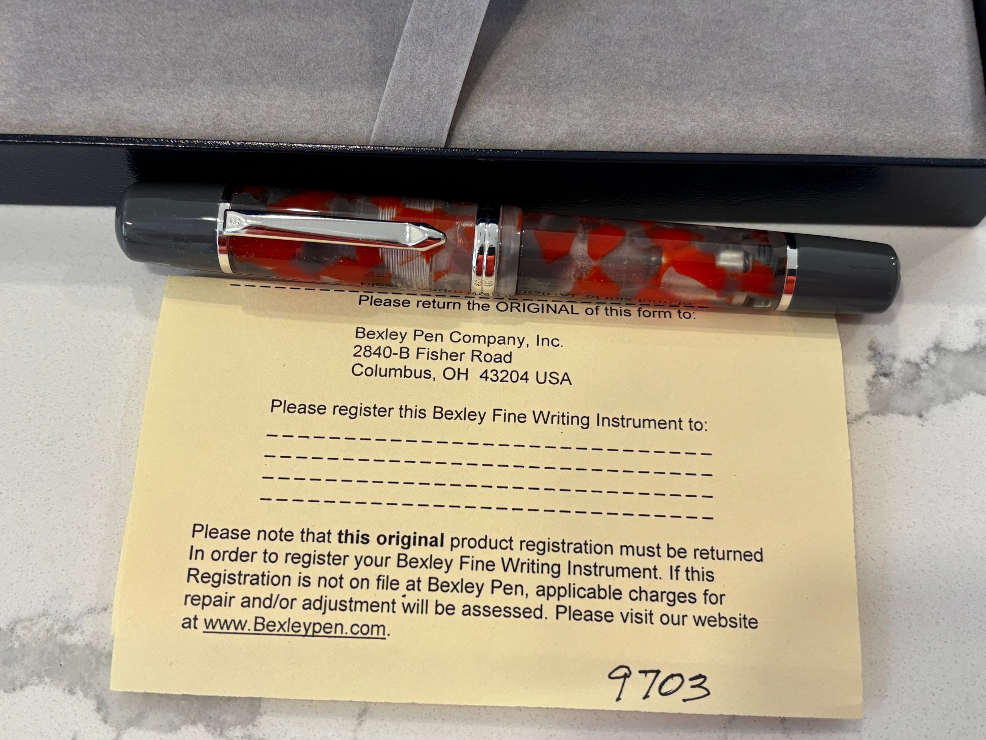 We recently acquired a remarkable collection of 400 Bexley fountain pens crafted between 1993 and 2013, all in pristine, unused condition. Each pen comes complete with its original box and paperwork. Made in Columbus, Ohio, these pens reflect classic American craftsmanship and design. Keep in mind that an 18K gold nib alone costs around $120 today—making this pen an exceptional value. Don’t miss your chance to own a beautiful part of Bexley’s legacy—converter included.