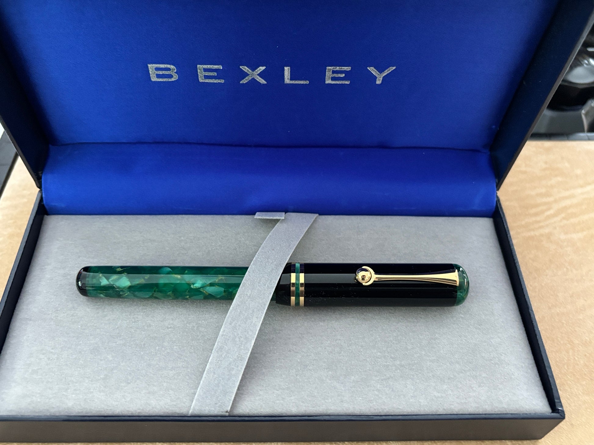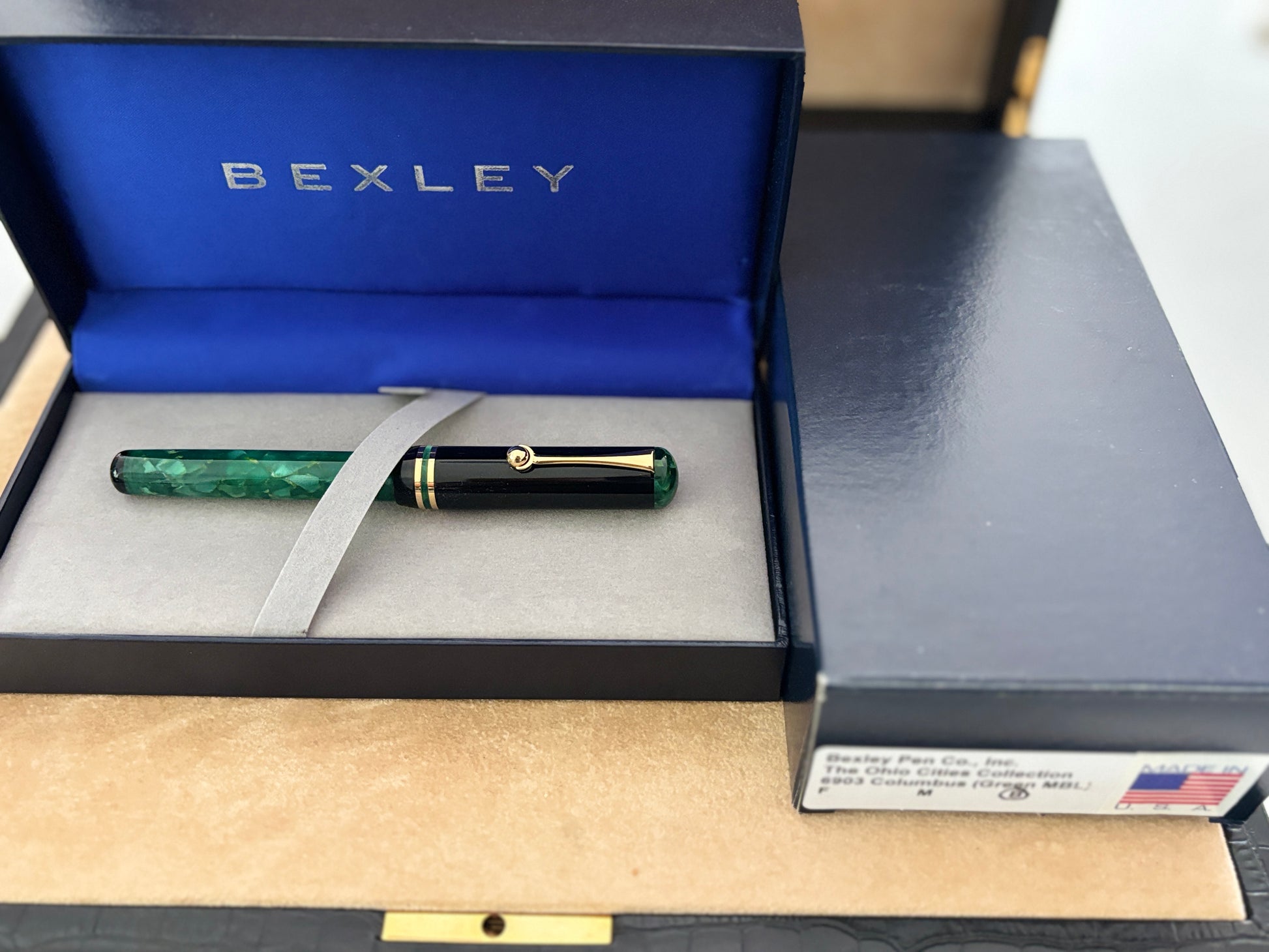 We recently acquired a remarkable collection of 400 Bexley fountain pens crafted between 1993 and 2013, all in pristine, unused condition. Each pen comes complete with its original box and paperwork. Made in Columbus, Ohio, these pens showcase classic American craftsmanship at its finest. Don’t miss your chance to own a beautiful part of Bexley’s legacy—converter included.