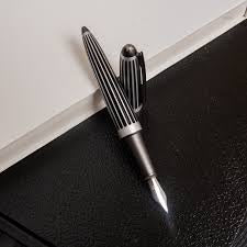 The Oxyd Brass Collection fountain pen is a remarkable writing instrument that combines vintage aesthetics with modern engineering. Crafted from oxidized brass, this pen features a body with groove-like depressions, reminiscent of the iconic Zeppelin airships. The oxidation process not only gives the pen a unique, aged appearance but also ensures that each piece is distinct. With a weight that feels substantial in the hand, the pen promises durability and a solid feel that many writing enthusiasts appreciate. The cap of the pen is designed with a satisfying soft sliding click mechanism that secures it to the barrel when not in use and posts securely on the back end while writing. This feature is particularly appreciated by those who prefer a longer pen or need to frequently cap and uncap their pen during use.