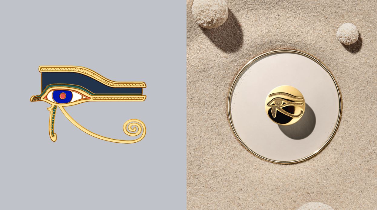 Gold was the symbol of power and wealth in Ancient Egypt and can be found in impressive pieces of jewelry, tools, vessels, and masks. The famous Eye of Horus is engraved in a 24-carat-gold-plated disc on the end piece of the Pen of the Year 2023. The god Horus' left eye, known as the eye of the moon, is seen as a symbol for healing, protection, perfection, and power.