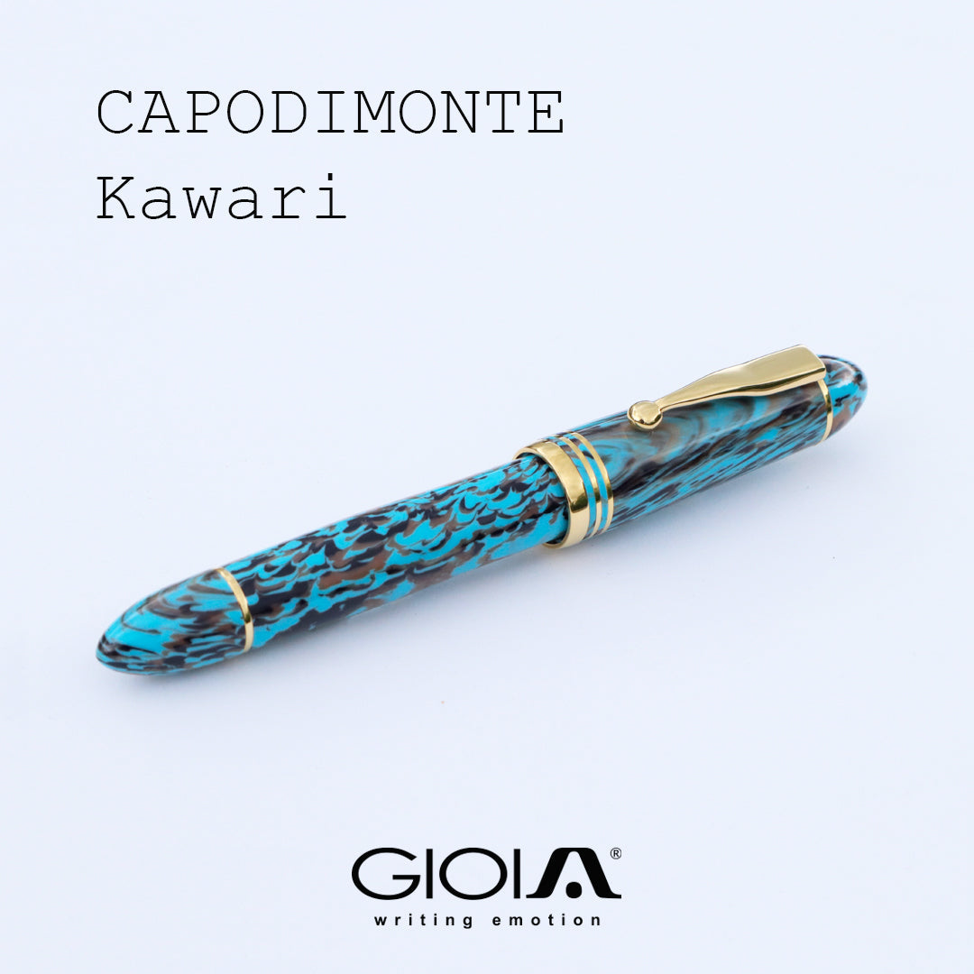 Capodimonte is also named after a hillside district of Naples, noted for the Palazzo Museo di Capodimonte and for a large public park with a boschive, fountain and amphitheatre of the city. This fresh design incorporates new gold and silver trims and uses a piston filler system that ensures a seamless writing experience. The "Kawari" is the first model of the Capodimonte collection; the spoken word signifies change, unusual event, difference or distinction. With its mesmerizing swirled pattern, this pen tells a story of passion and dedication from the artisans at Gioia Italia in Napoli, Italy.