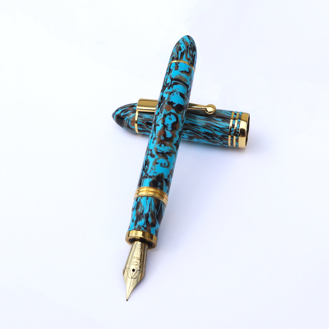 The Gioia Capodimonte fountain pen is a distinctive writing instrument that exudes elegance and beauty. The pen is crafted from high-quality materials, including a precious resin body and a stainless steel #6 sized nib. It is the first of its kind from Gioia to feature a completely new stylistic cigar-shaped pen design.