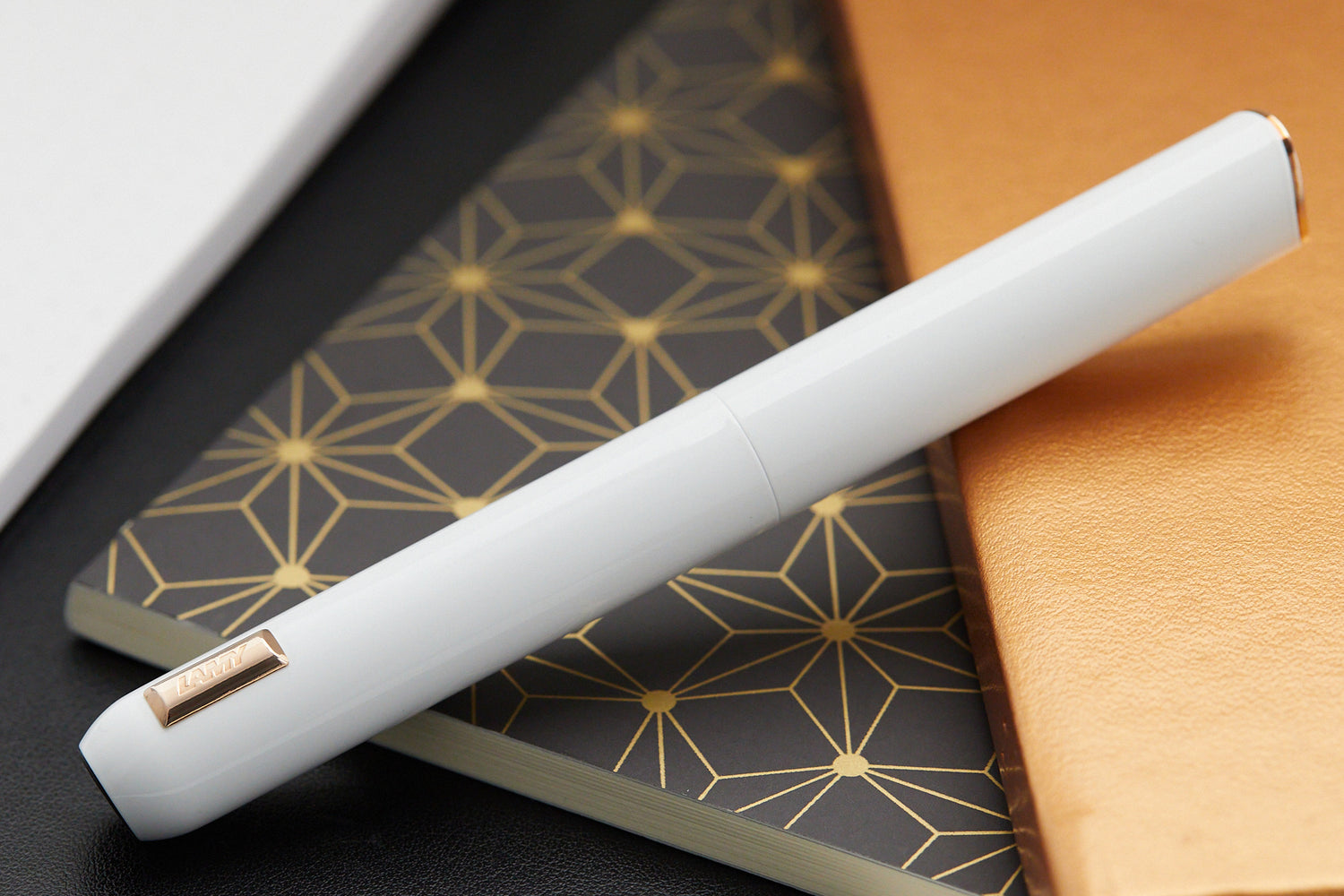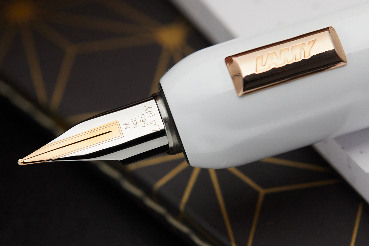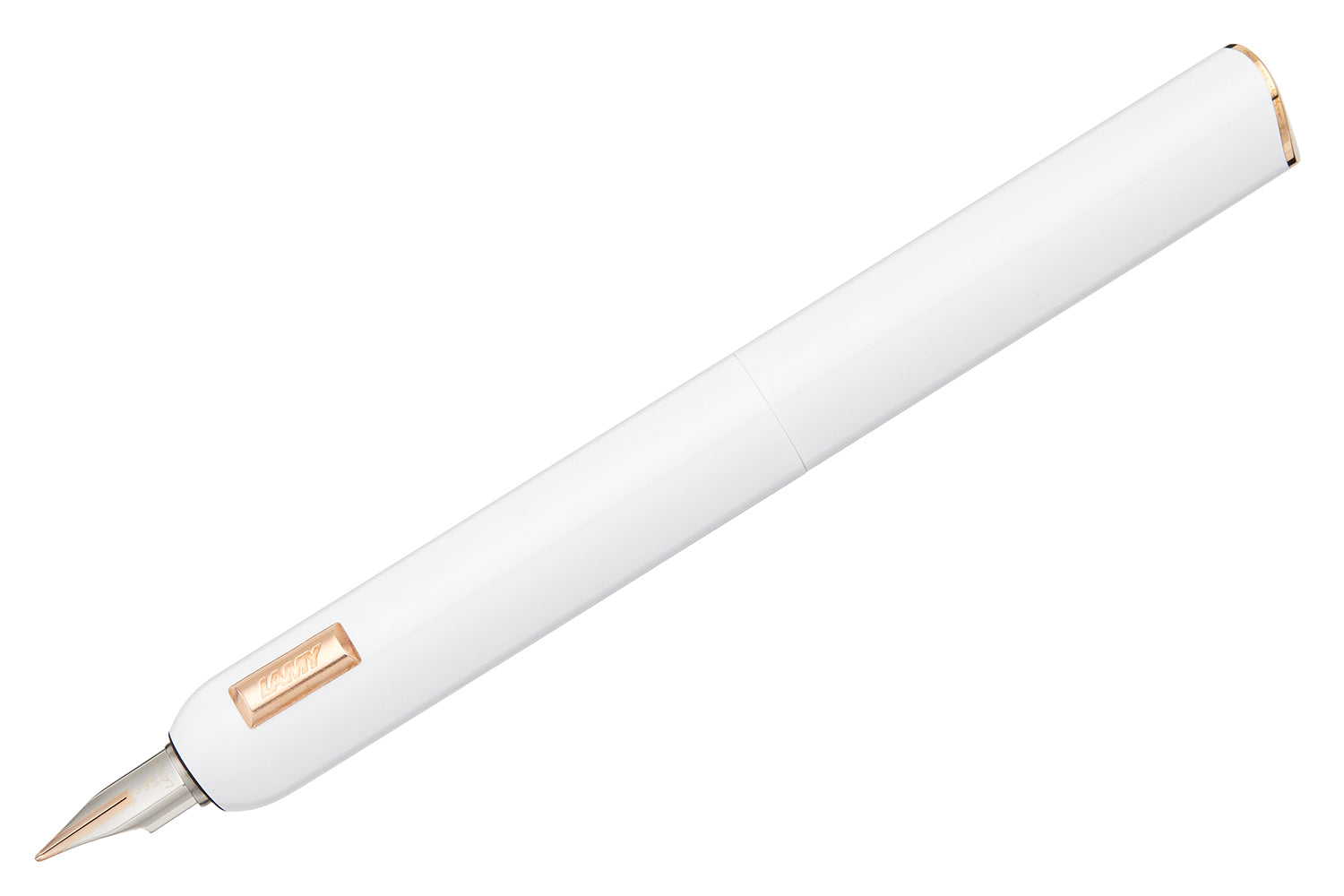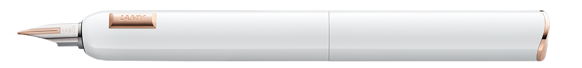 The Lamy Dialog CC White is a study in style and sophistication. The 14k solid gold nib unit is provided in four different tipping sizes and is plated in two-tone rose gold and platinum.