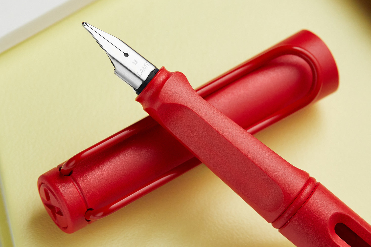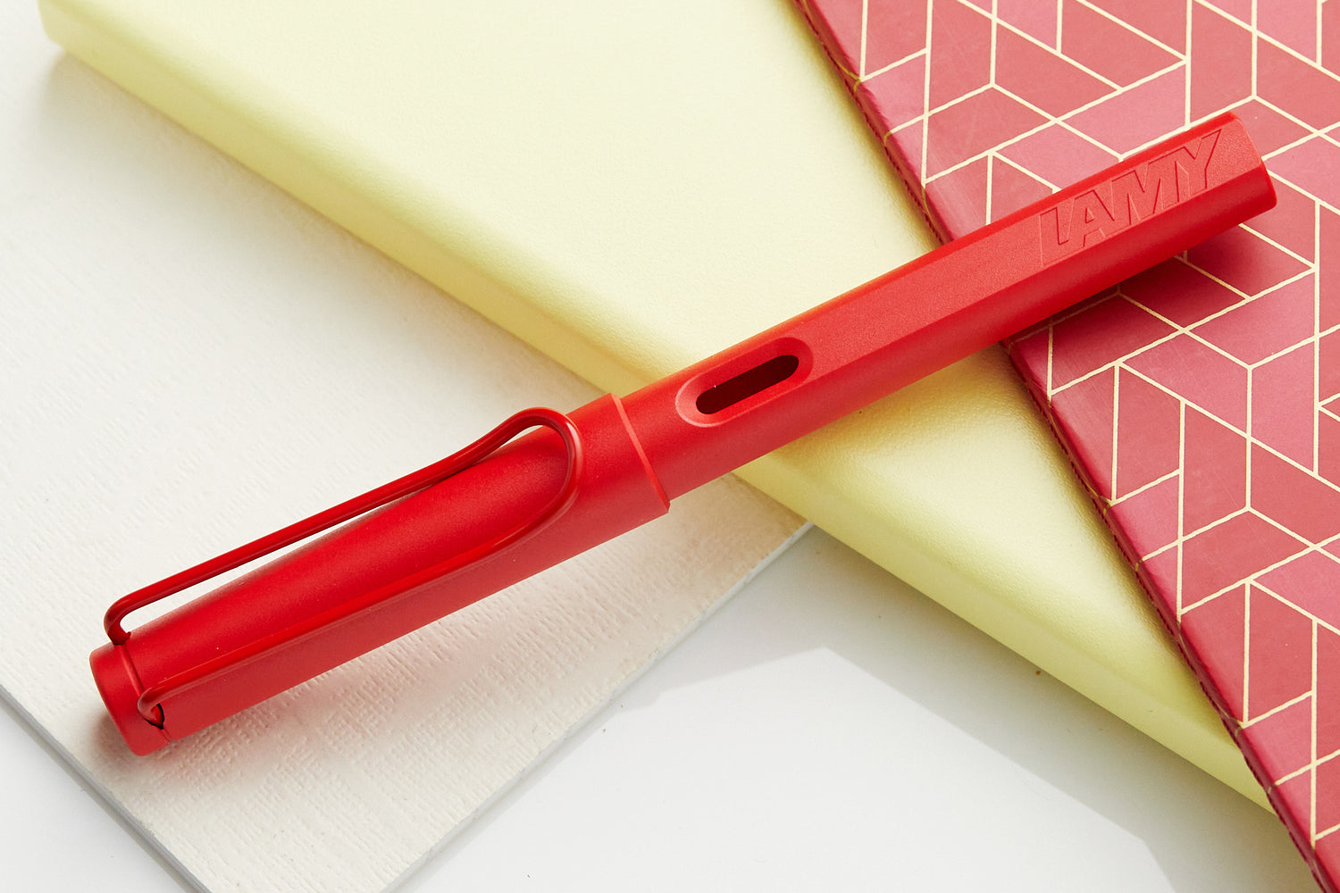 Indulge in the sweet charm of the Strawberry Lamy Safari fountain pen, a playful and vibrant color that adds a delightful pop to your pen collection, turning each writing session into a flavorful experience.
