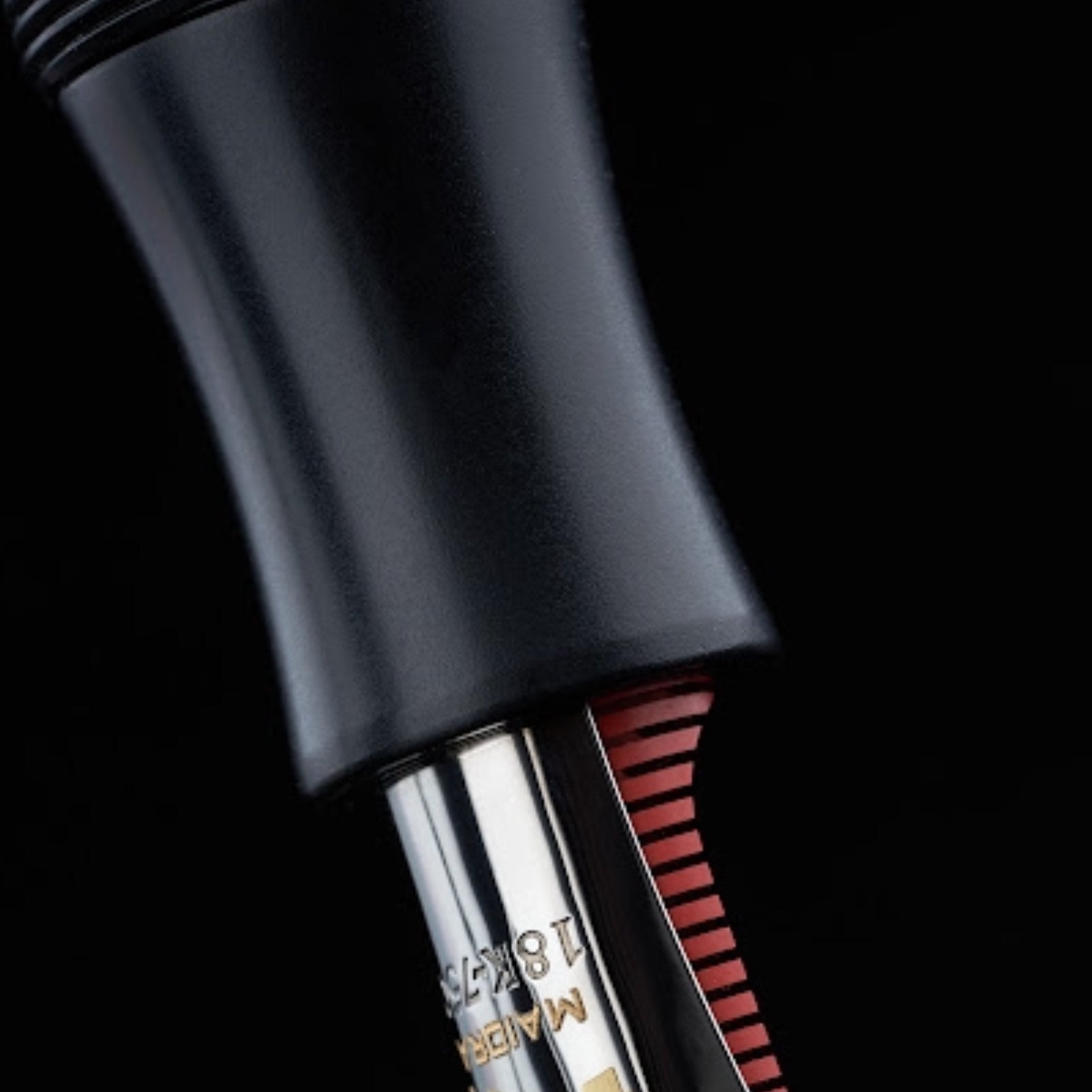 3. Nib and Feeder: The pen boasts a #8 (large) 14-carat bicolour gold nib, plated with precious ruthenium, which features the classic checkered flag design. This design symbolizes speed, competition, and triumph—key elements of racing culture. The nib is complemented by a red ebonite feeder (#8 large), enhancing both functionality and aesthetics.