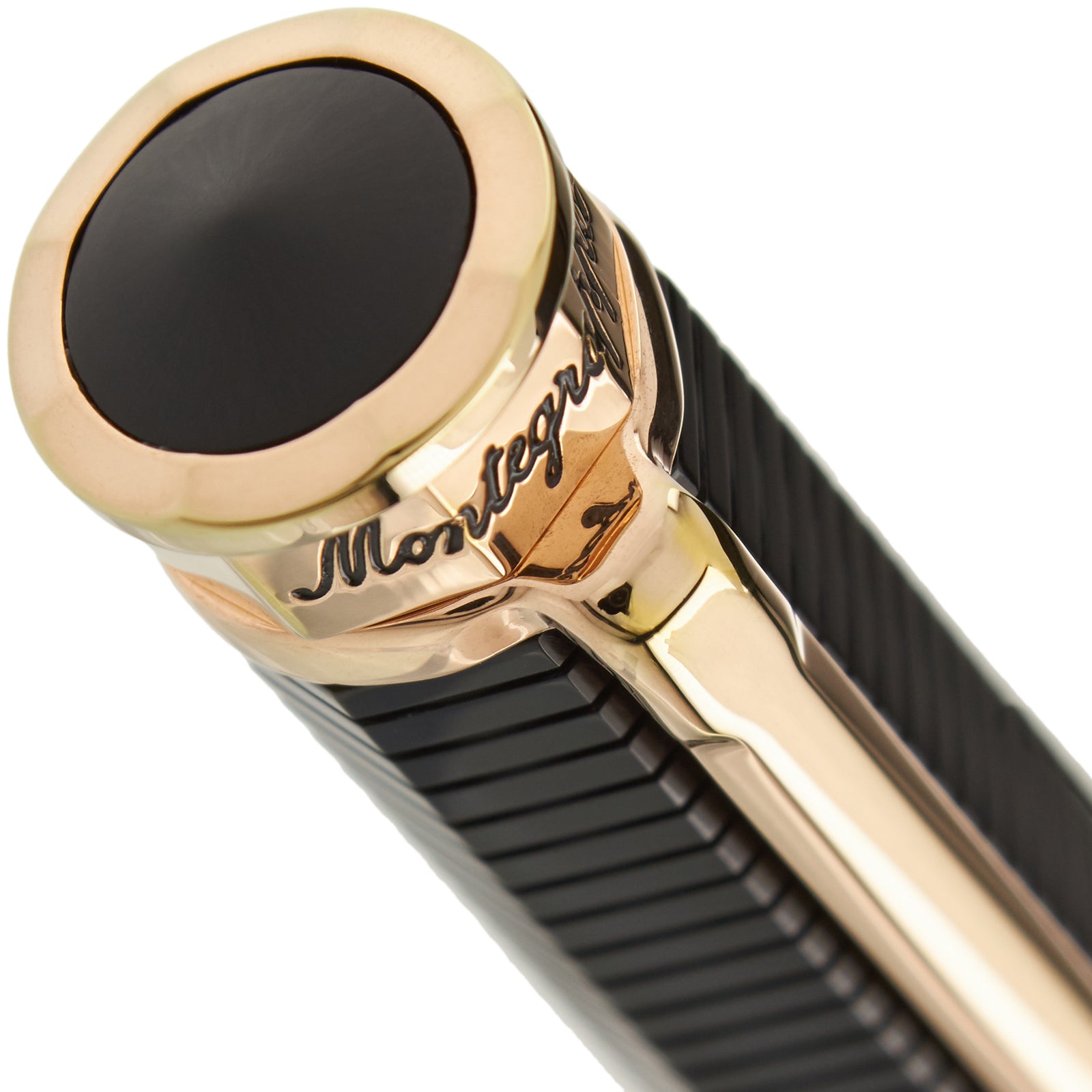 The softly peaked rose gold end cap vibrantly displays the faceted effect of the pen. While "Montegrappa" is elegantly engraved on one side of the metal, "Italia" is engraved on the other.