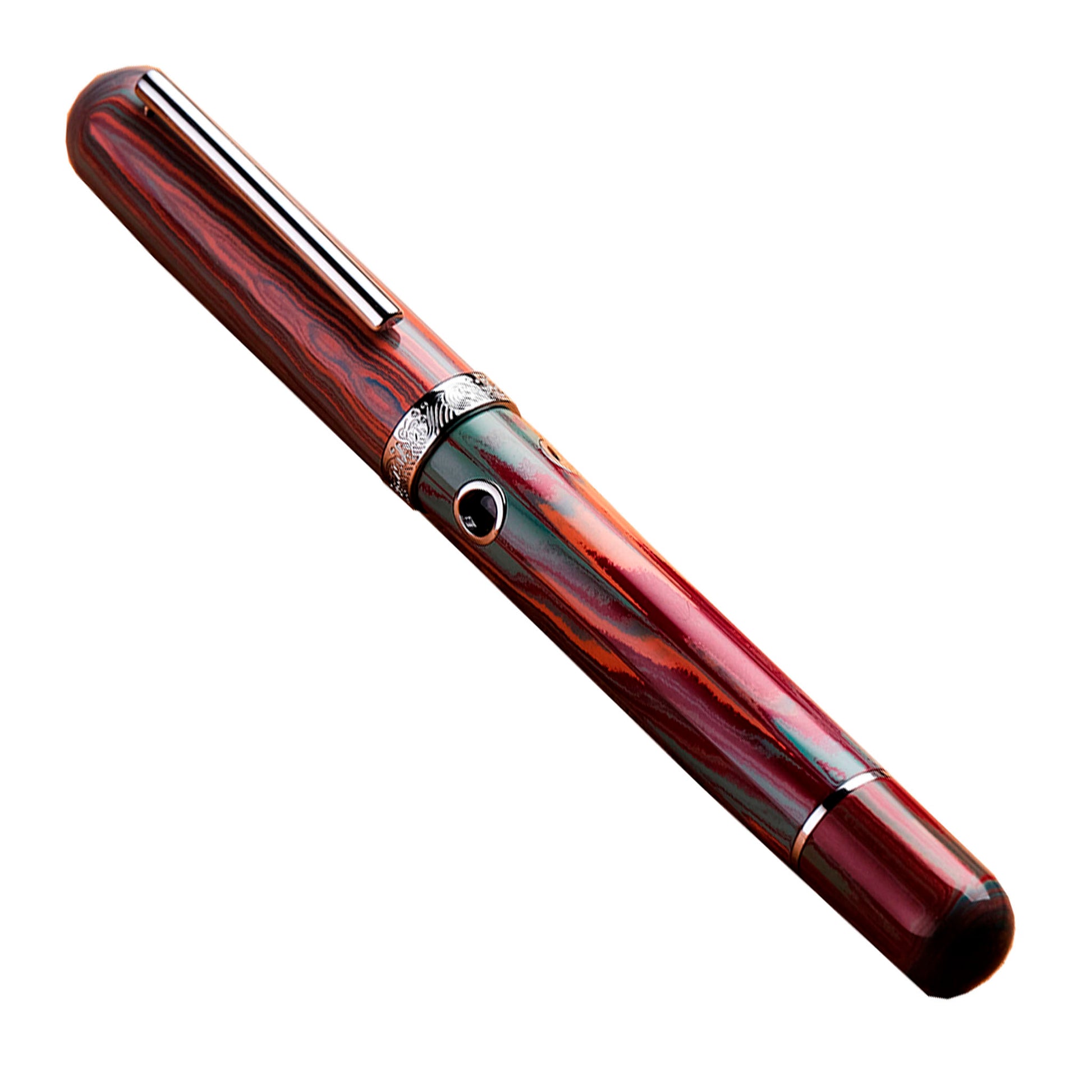 Commonly used for signatures and correspondence, the Left Oblique customization provides broad diagonal strokes and narrow cross-strokes, and like a cursive italic, is more position-sensitive and demanding than a stub. The whole pen must be rotated to the left in order to write smoothly, without skipping. The "Left" in Left Oblique refers to the cut of the nib itself, and does not refer to the handedness of the writer. |