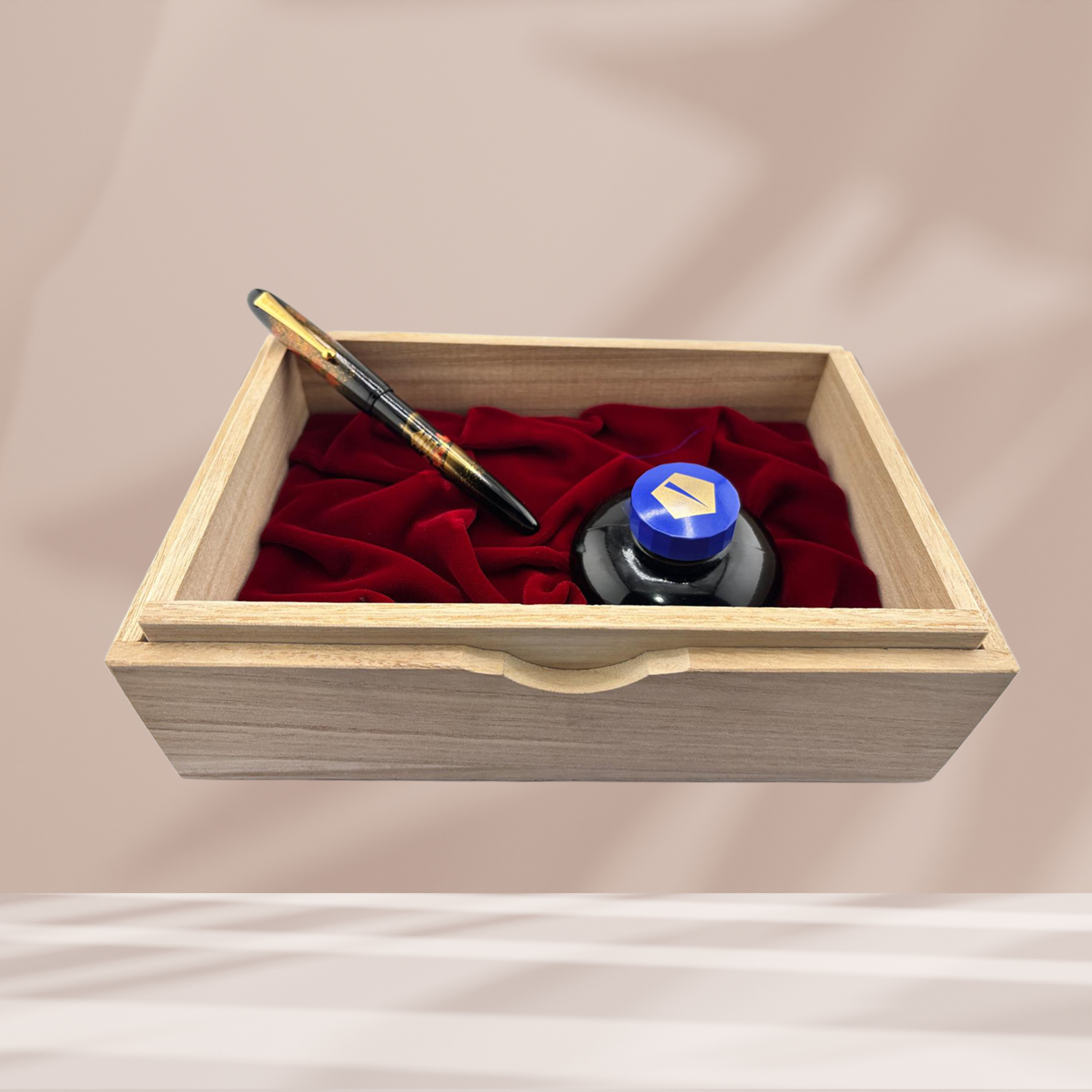 The Yukari Autumn Leaves includes a generic box, papers, and a bottle of ink. Featured in our Friday Frenzy: Japanese Treasures Edition, it’s offered at a special value for collectors and enthusiasts seeking a masterpiece that combines natural beauty, craftsmanship, and writing excellence.
