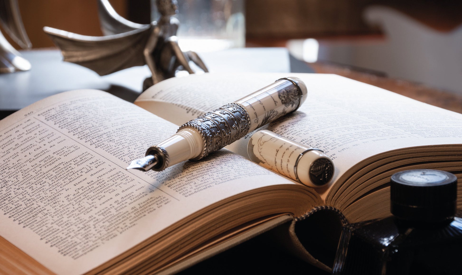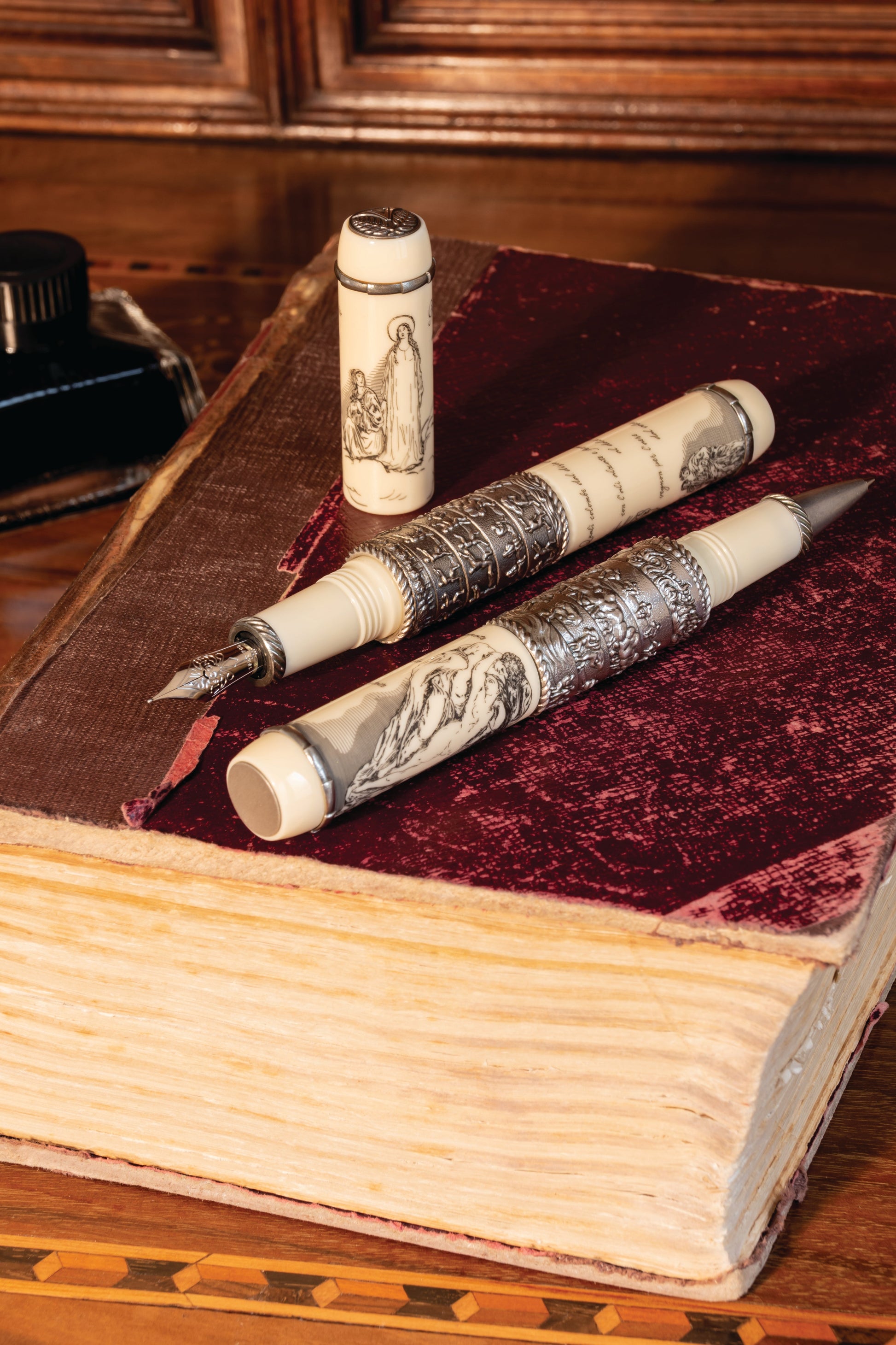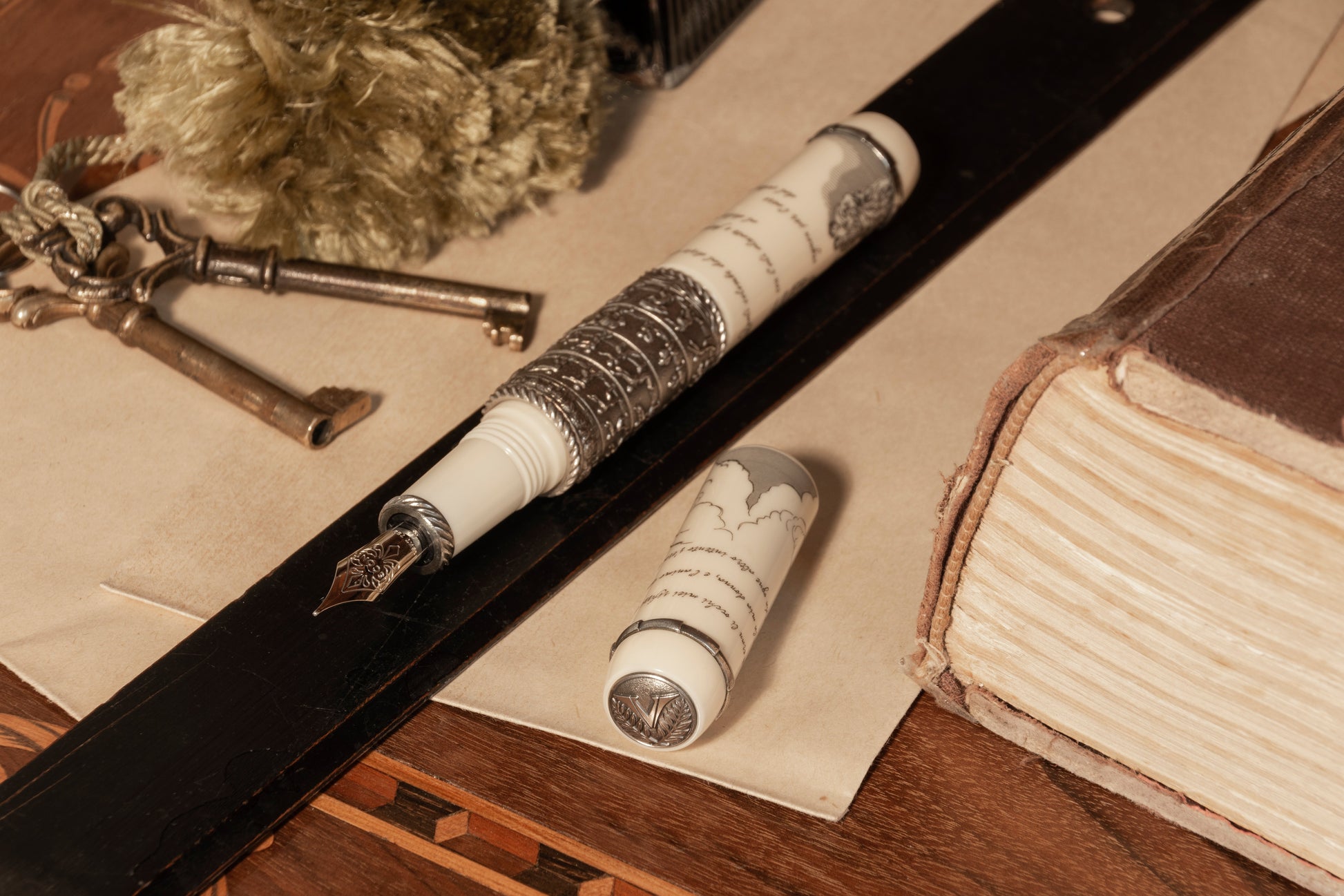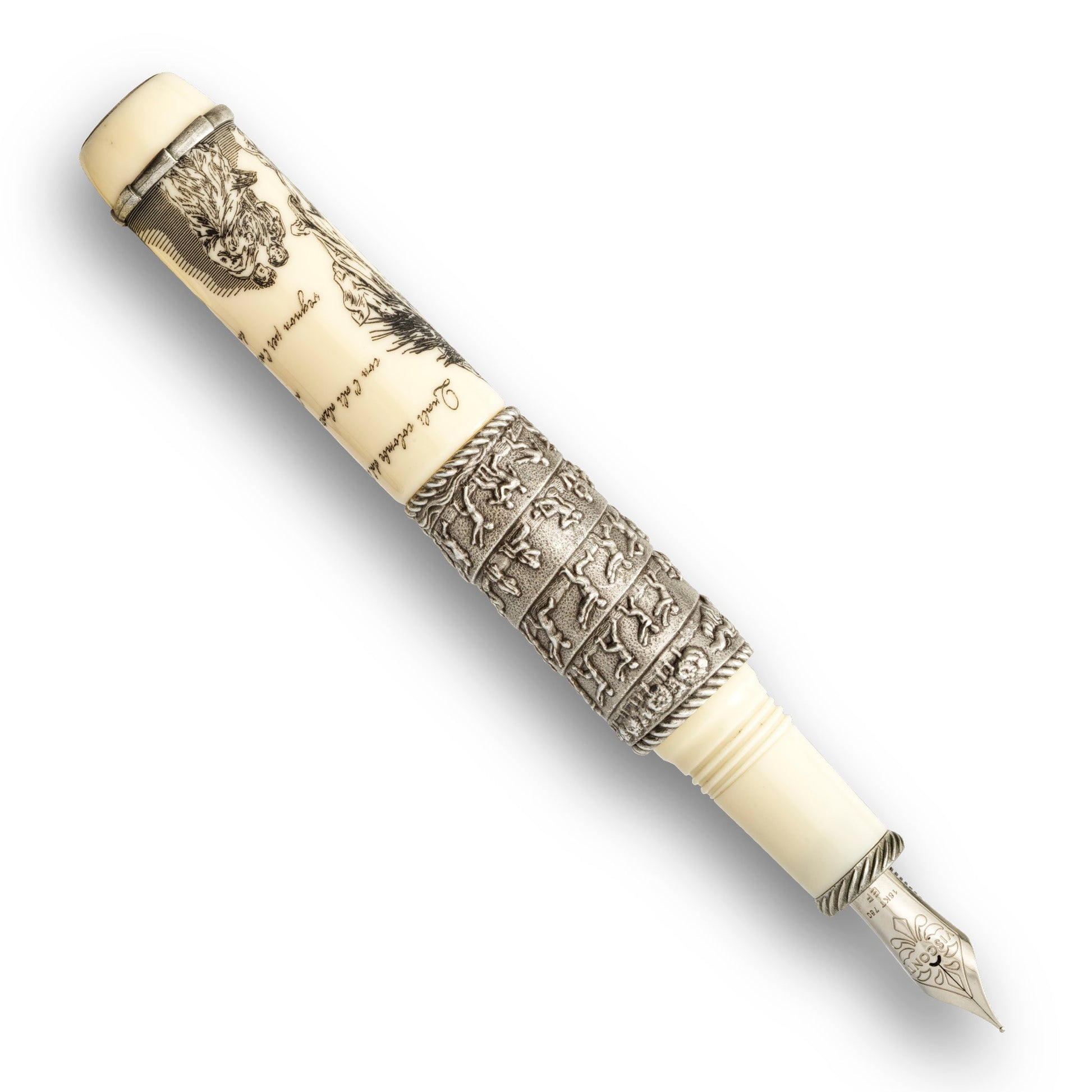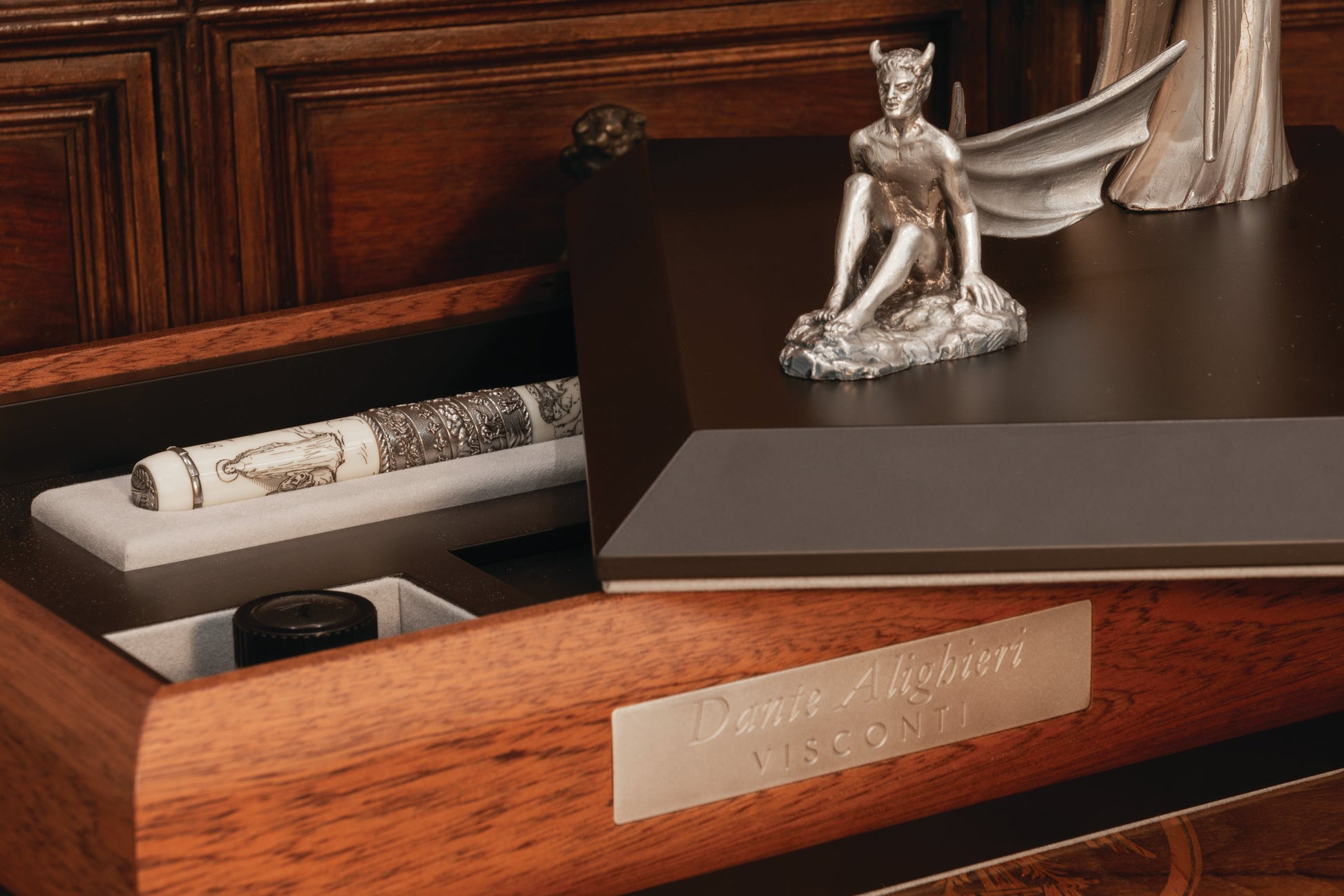 Visconti's craftsmanship and artistry is on full display yet again in the detail of the silversmithing and meticulous scrimshaw work throughout the pen that depict different scenes of Dante's "Divine Comedy."