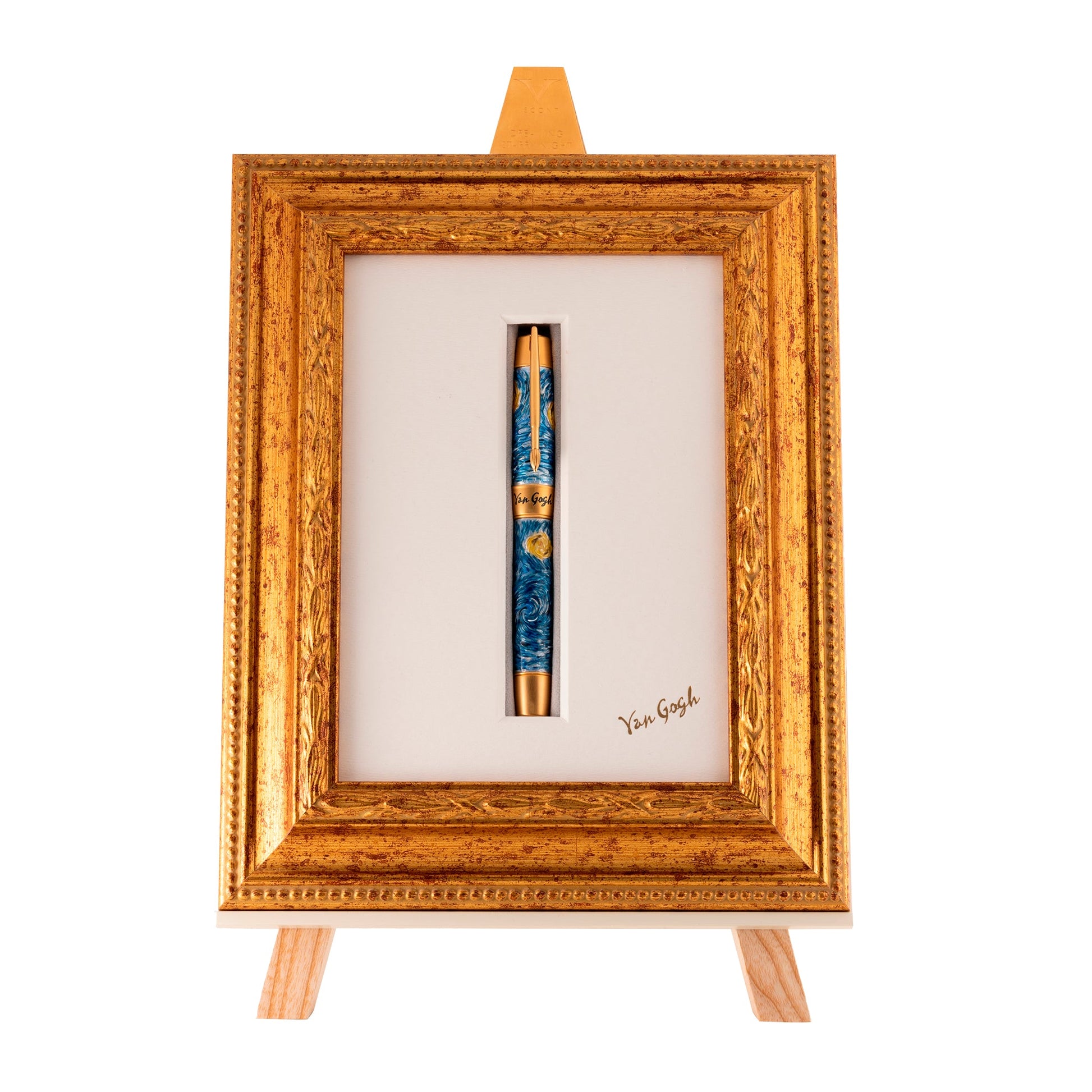 The pen is complemented by a special stand reminiscent of the world of painting, designed as a precious frame resting on its easel. The canvas also features Vincent Van Gogh's golden signature and a plaque bearing the Visconti logo and the name of the collection. In this way, the Dreaming Starry Night can be displayed at the center of the canvas- the most fitting context for a true work of art.