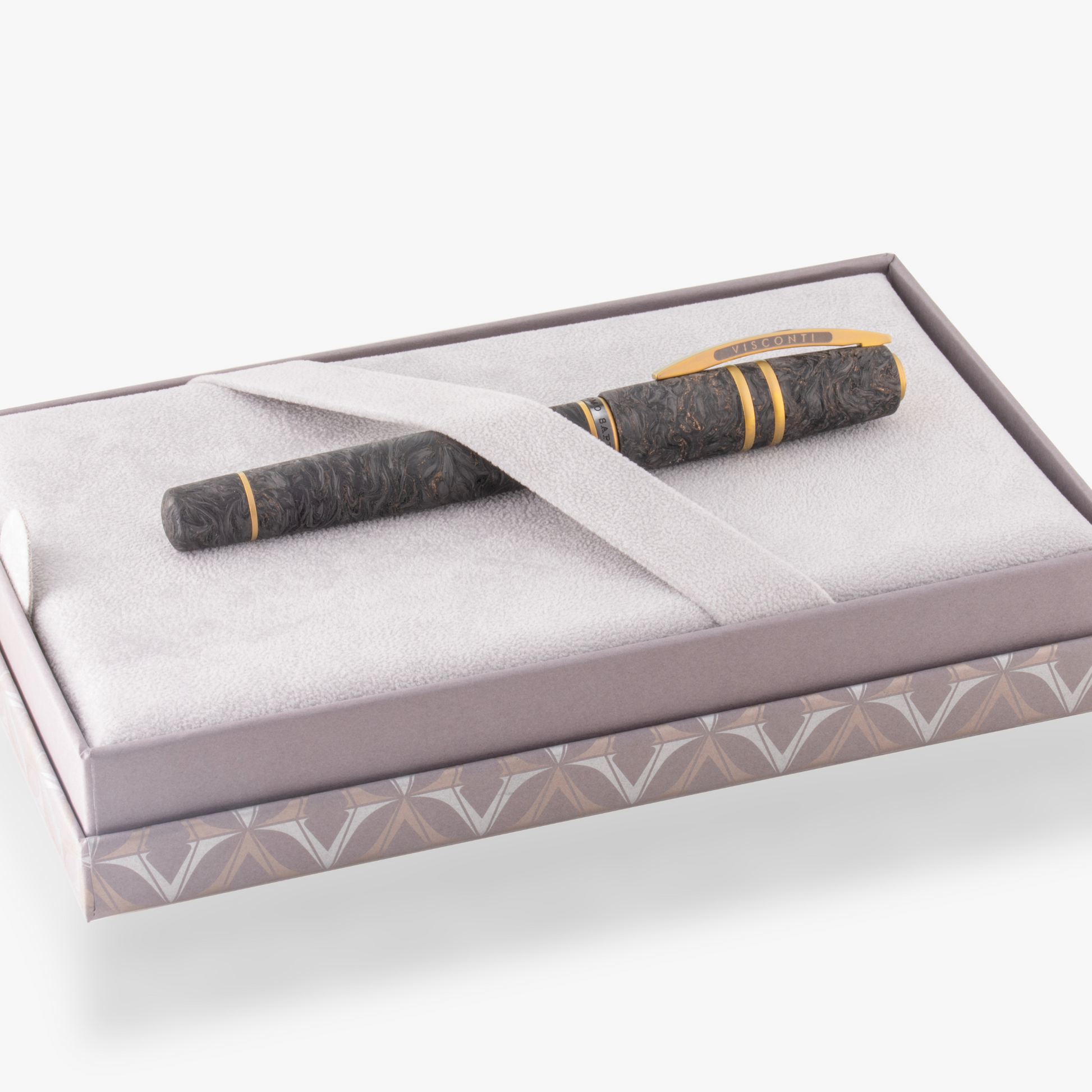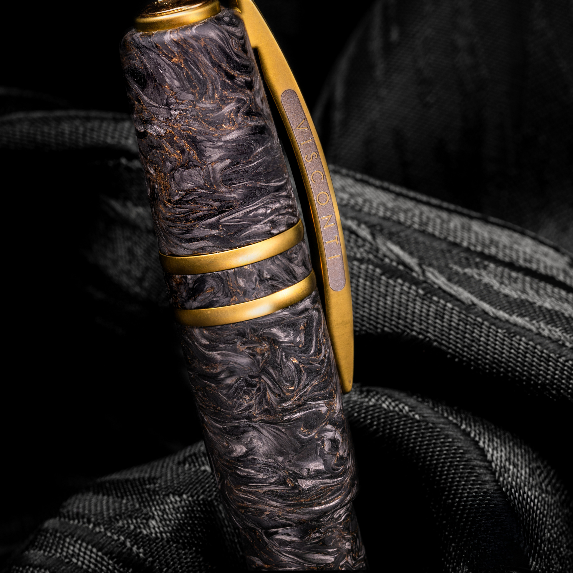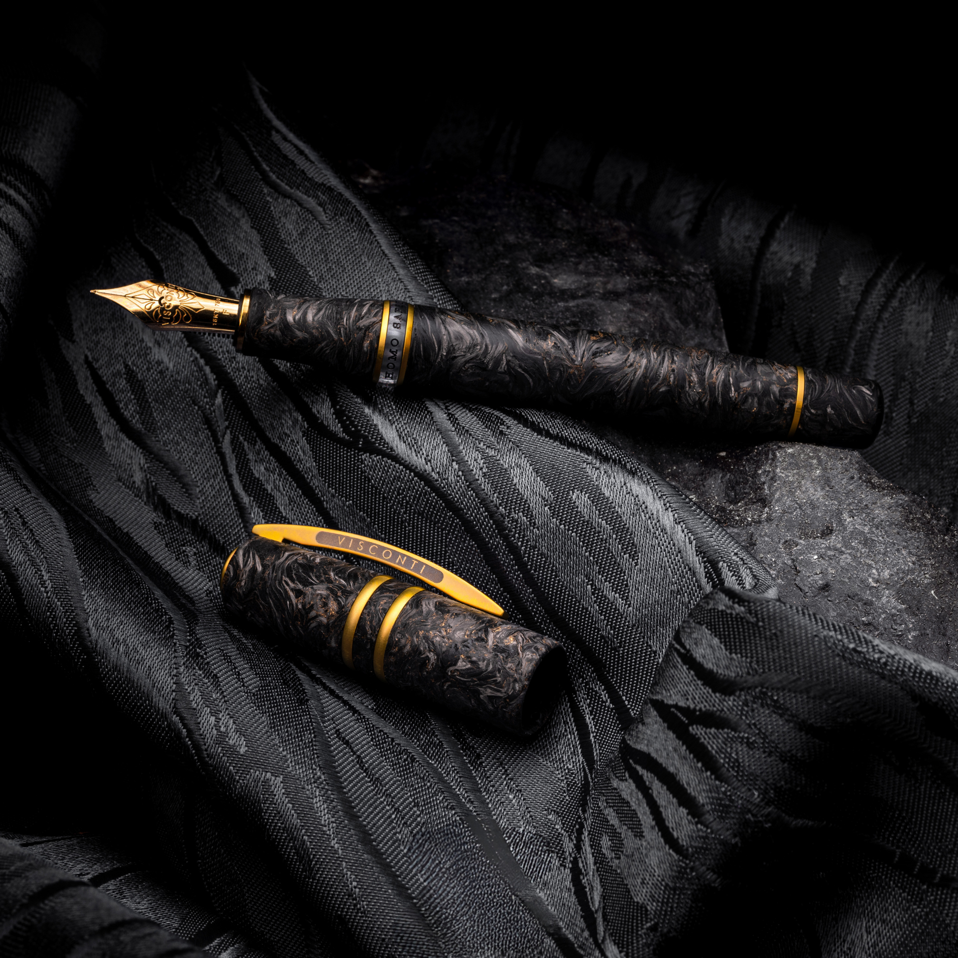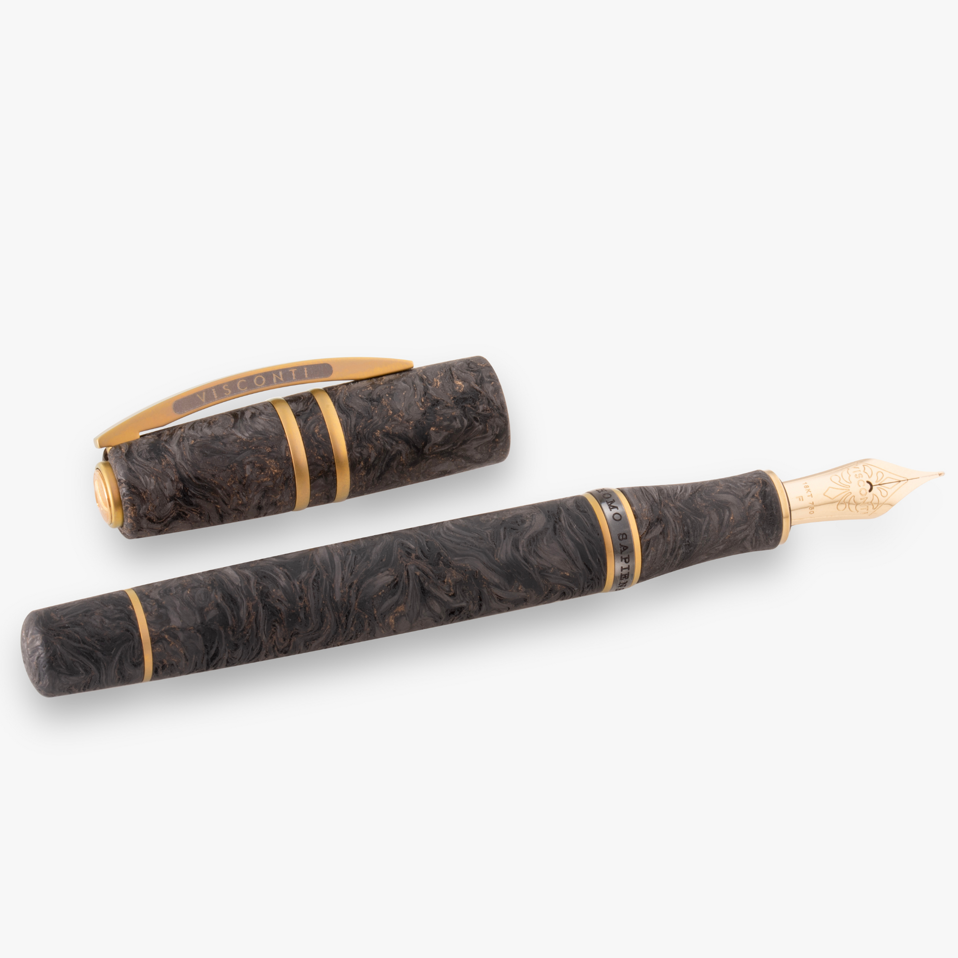 The cap is equipped with an improved magnetic closure system, ensuring an even more secure and solid seal. Completing the fountain pen is our 18kt yellow gold Visconti nib. To protect the metal components, a very thin layer of transparent nano-ceramic coating is applied, which stabilizes the color over time and preserves the titanium from potential micro-scratches.