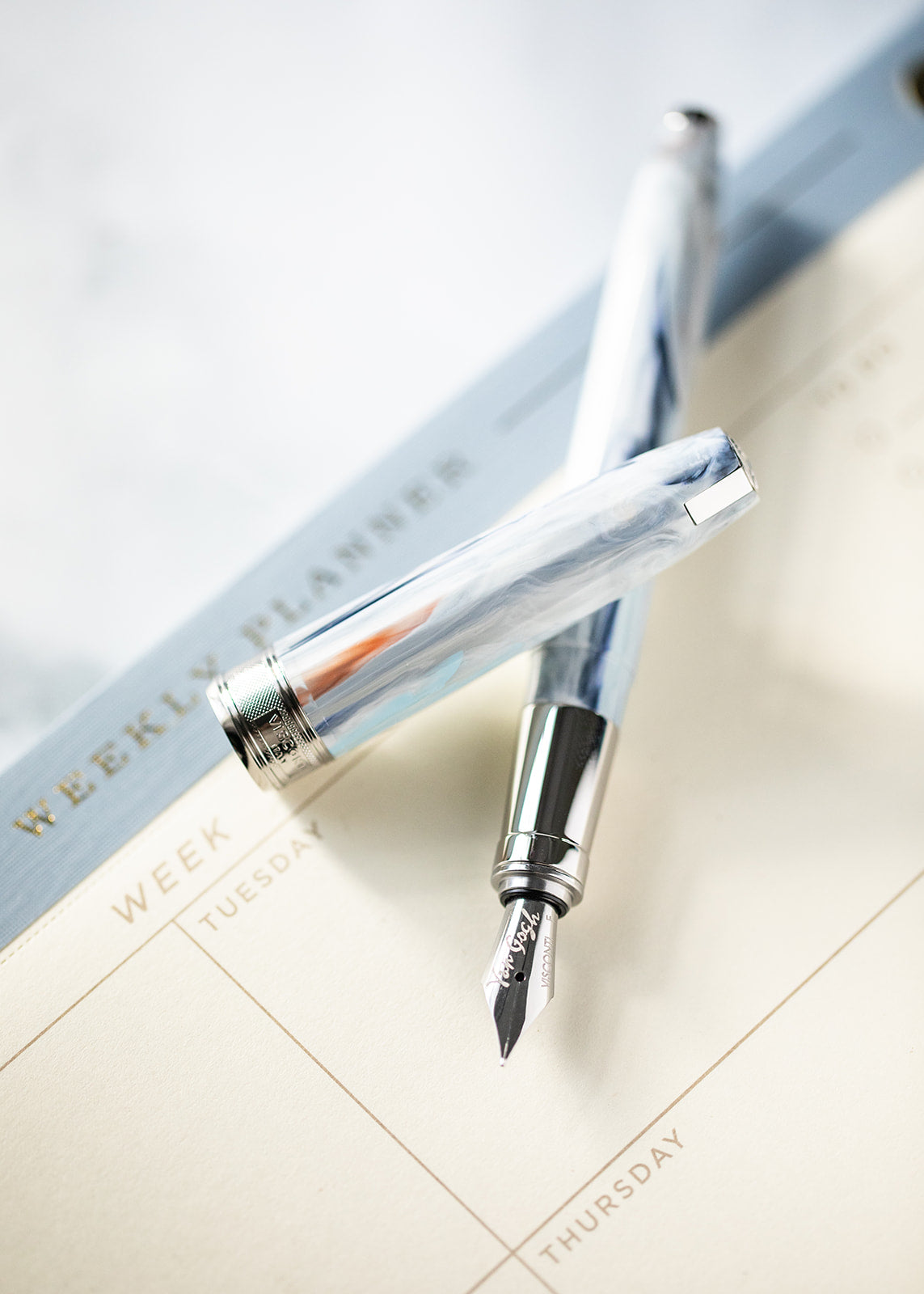Most fountain pens are provided with standard stock nibs ranging in size from Fine to Medium to Broad, with Extra-Fine, Double-Broad, Stub, and Music sizes also common (experienced pen users can check out our tipping sizes page for exact comparisons among the pen lines we carry).