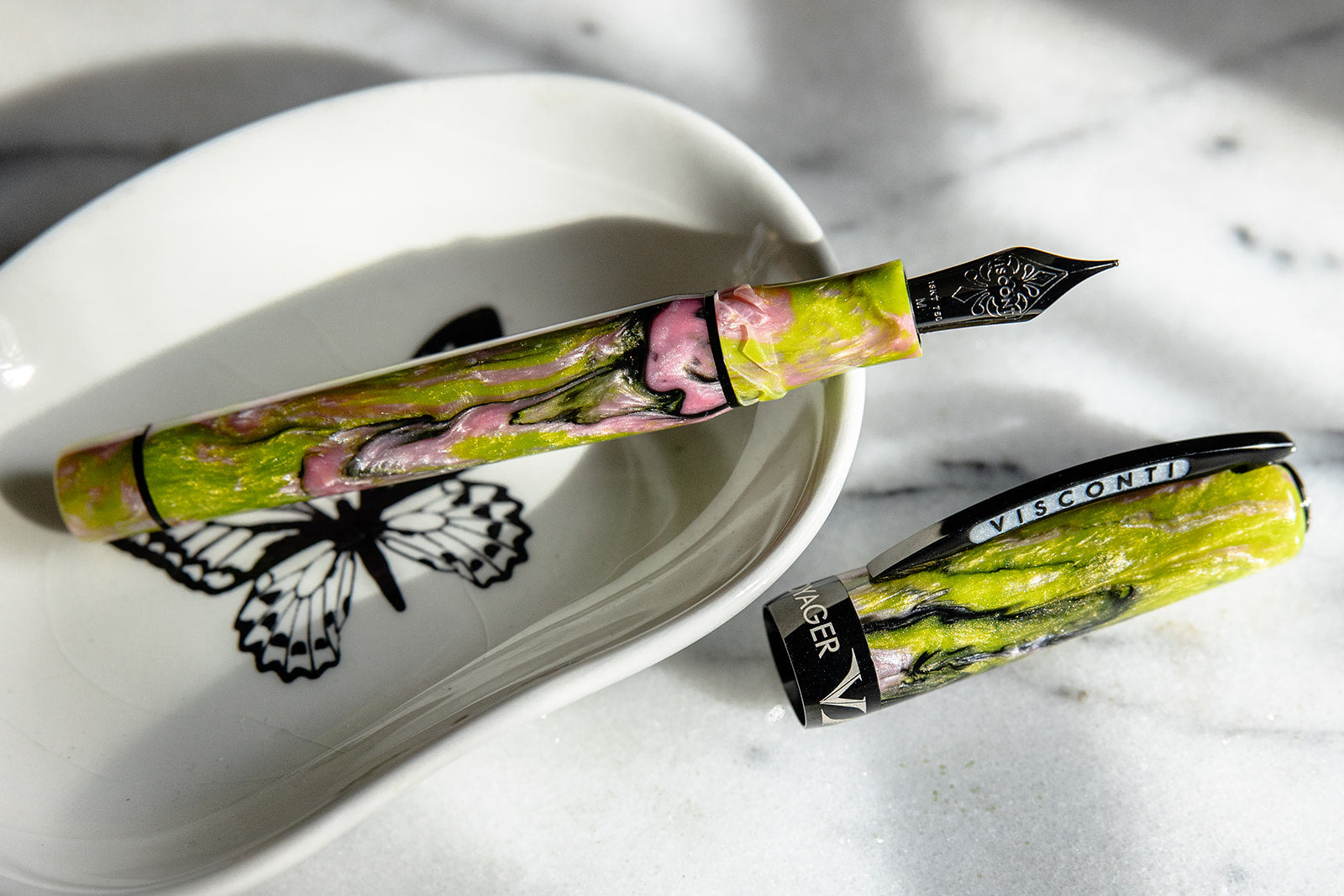 Visconti Voyager Mariposa Malachite with PVD Black Trims - Fountain Pen