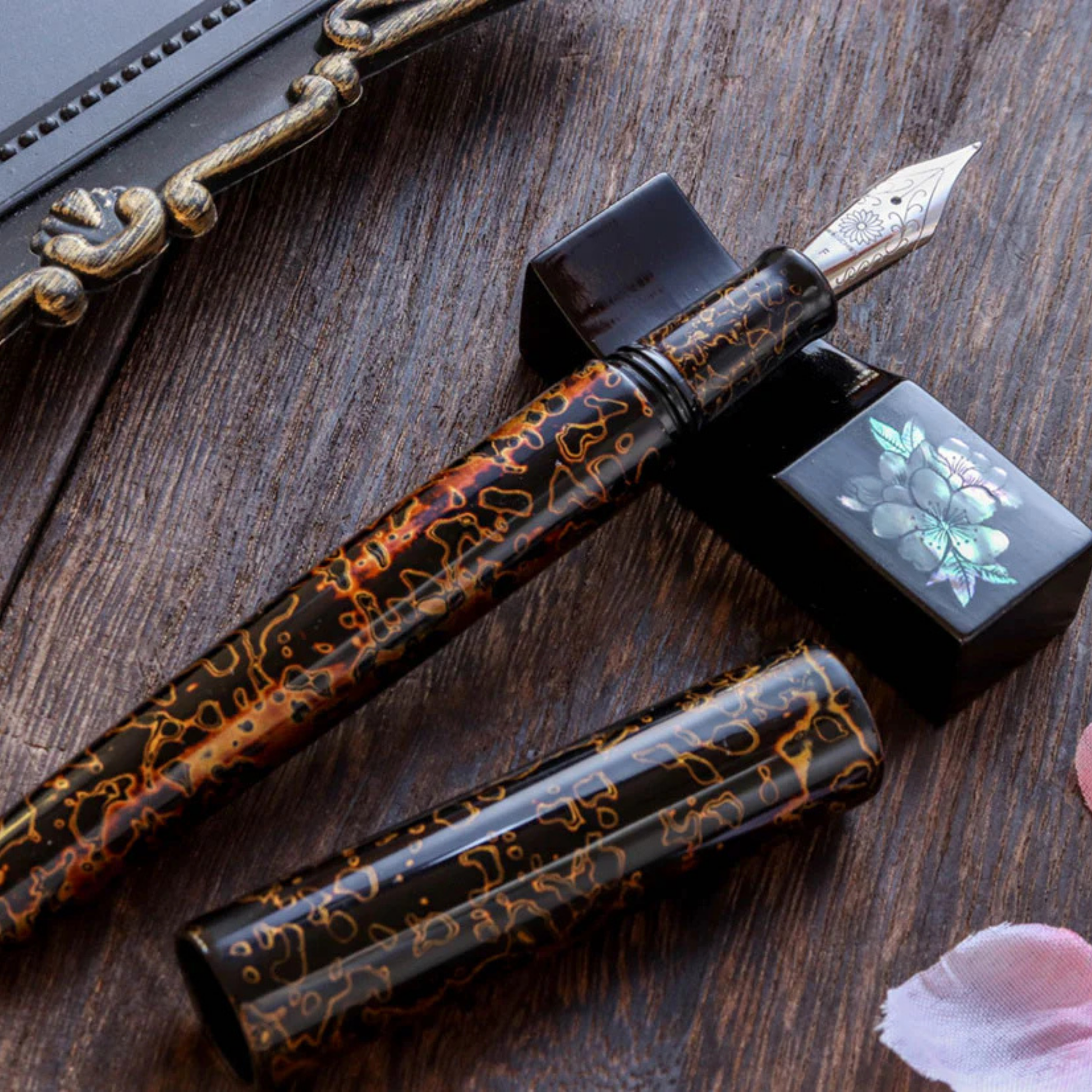 The traditional Saihi-nuri technique on lacquerware is a sophisticated process. On fountain pens, even though adjusted, crucial steps and standards need to be followed: